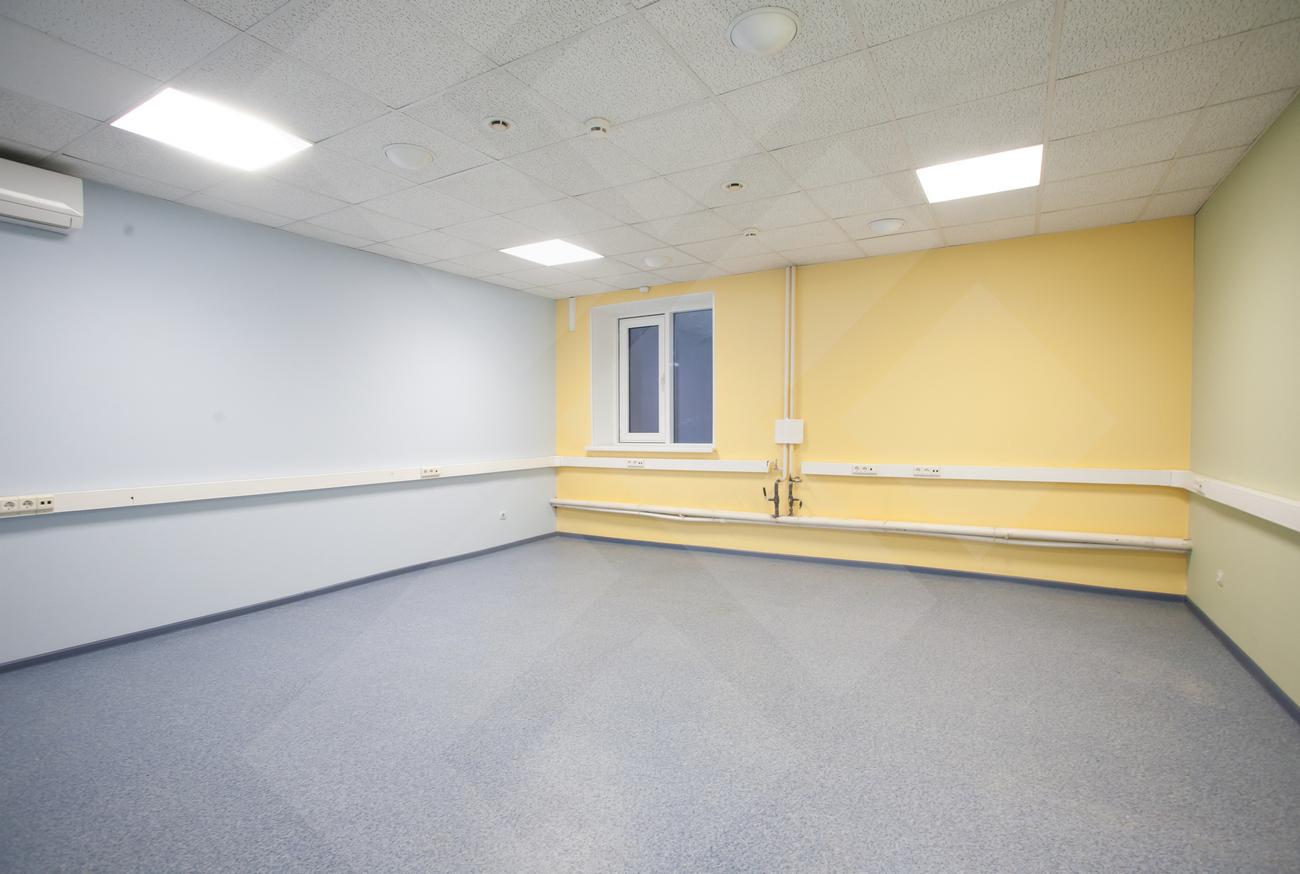 Выполнена качественная отделка: окна – пластиковые стеклопакеты, потолок – подвесной типа «армстронг». Напольное покрытие кабинетов – линолеум, общих зон – плитка.