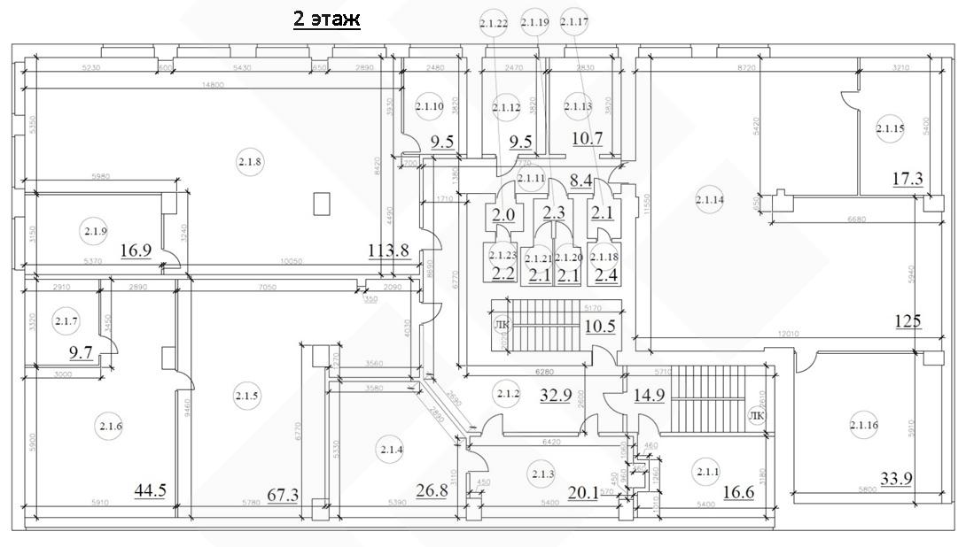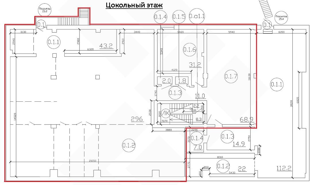 Офисная часть 1233,4 кв.м. и помещение 454,1 кв.м. на цокольном этаже под склад. Имеется вход непосредственно с улицы Годовикова.