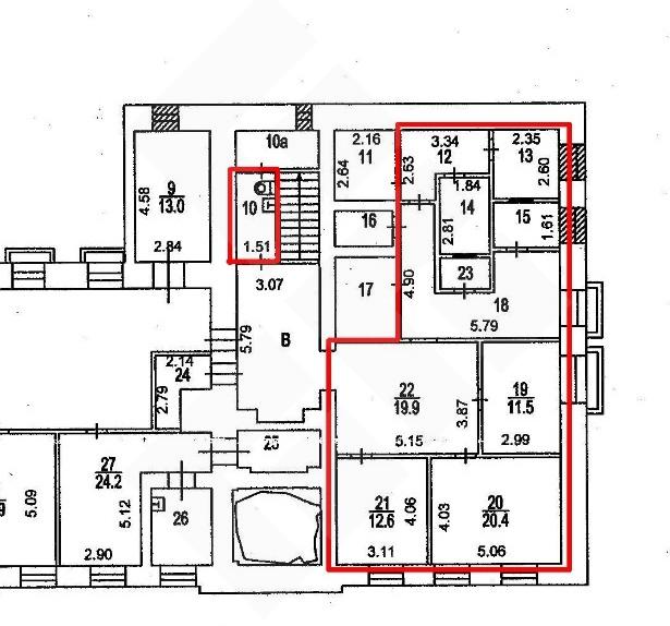 Общая площадь вакантного блока - 111 кв.м (цоколь). Офис с отделкой, состояние - за выездом арендатора, планировка -кабинетная.