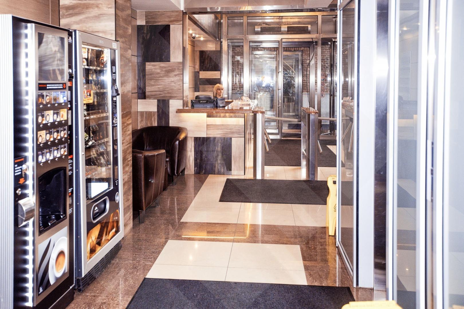 В здании работают кафе и ресторан, отделение банка, спа-салон, студия красоты, печатный киоск, автоматы с напитками и сэндвичами.