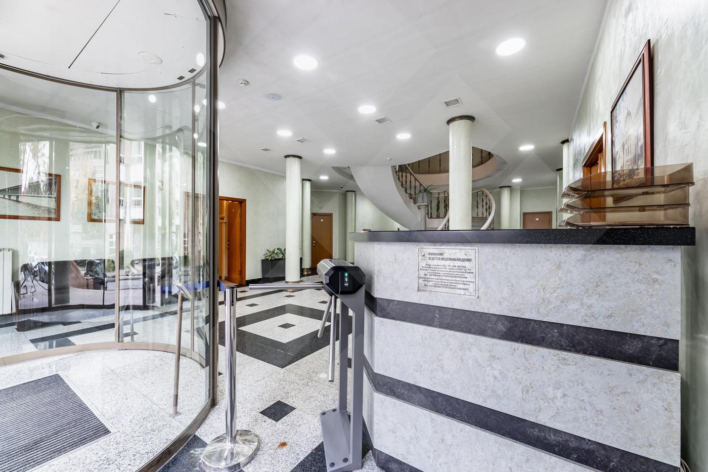 Презентабельная входная группа. Офис кабинетной планировки. С/узел в блоке. Вентиляция, кондиционирование.
