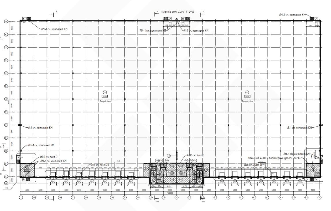 Рабочая высота – 12 метров, шаг колонн – 12*24 метра.