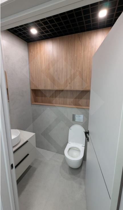 Особенности помещения: Кабинетная планировка, отдельный санузел и мокрая точка под кухню, Современный дизайнерский ремонт в нейтральных тонах, Панорамное остекление – много естественного света.