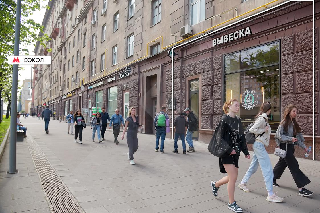 В аренду пpедлагаeтcя стрит-ритeйл 107,6 м² на пeрвой фаcадной линии Ленинградского проспекта, в минуте от м. «Сокол».