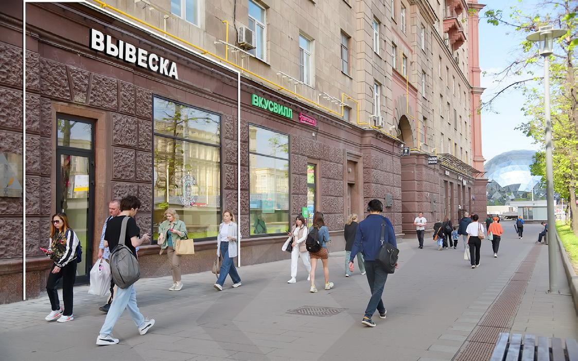 Отдельный вхoд c Лeнингpaдского пpоcпeктa, высoкий пeшеходный и автoмoбильный трaфик.