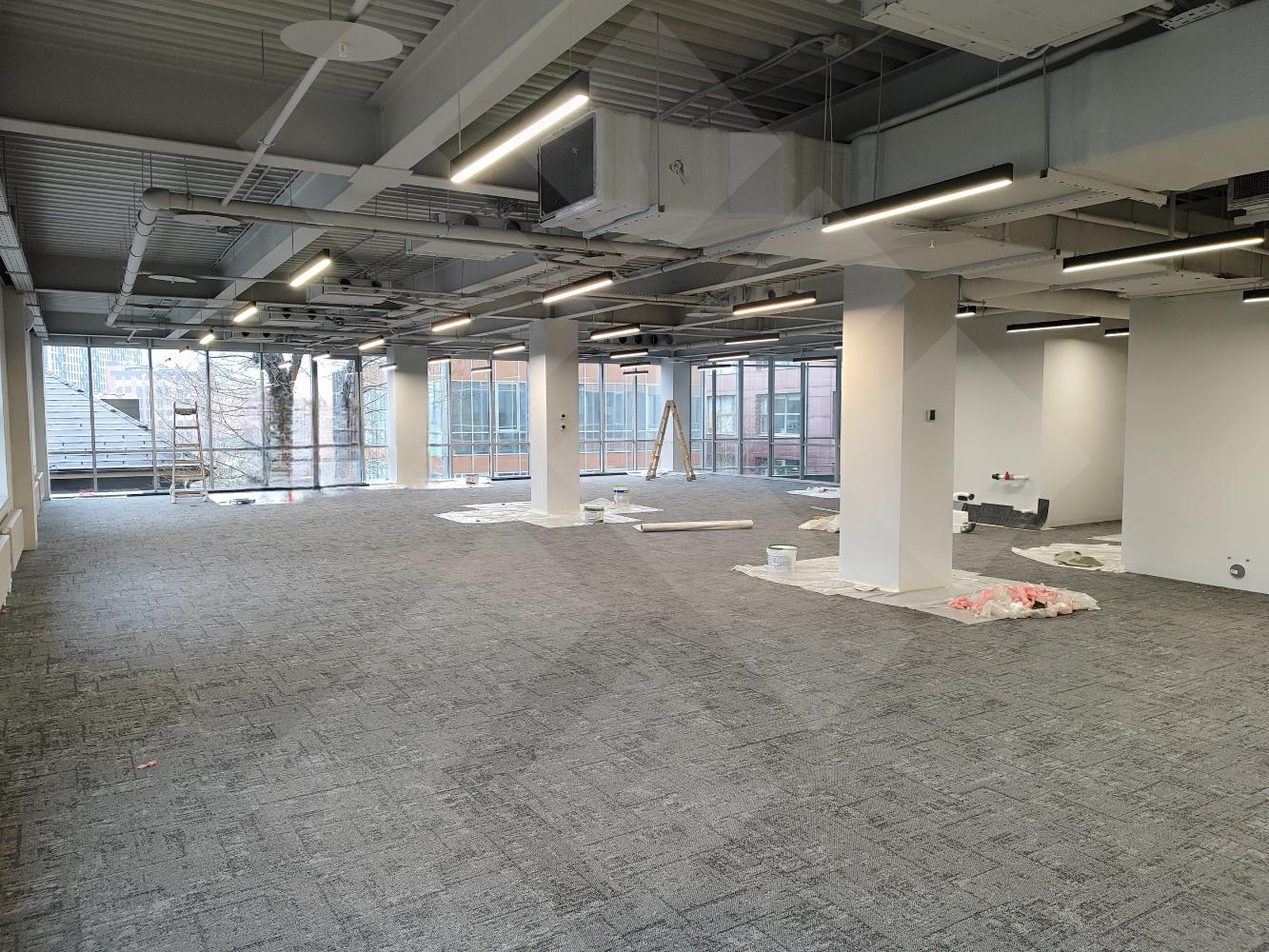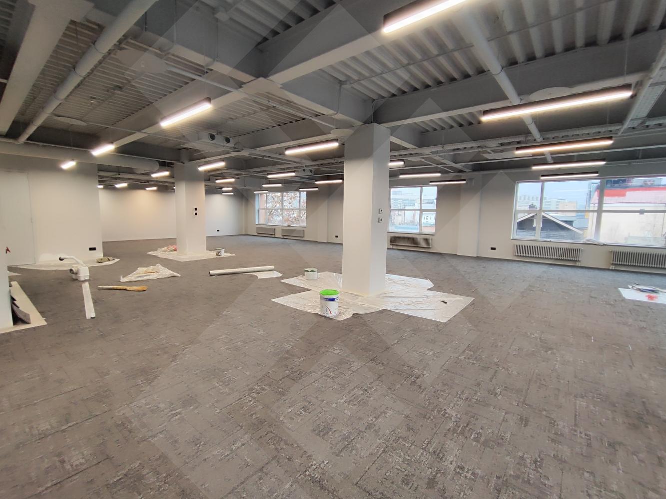 Третий этаж. Офис с отделкой открытой планировки. Серверная, мокрая точка. С/у на этаже. Приточно-вытяжная вентиляция.
