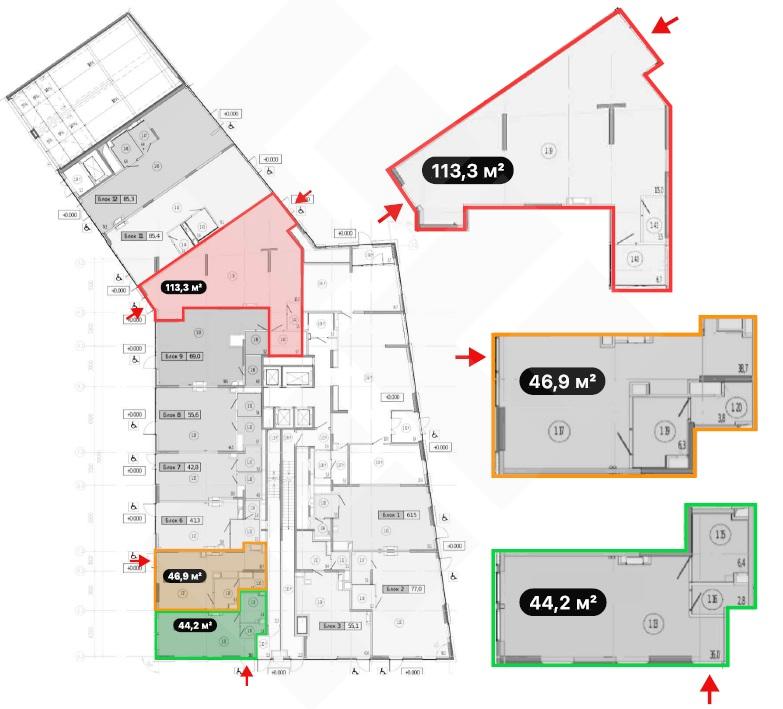 Большие витринные окна, высокий рекламный потенциал.