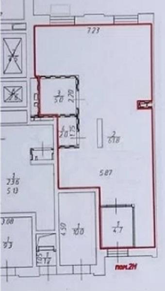 Помещение с отдельным входом, зальной планировки, витринным остеклением с двух сторон. Высота потолков - 4,05 м. Все коммуникации в наличии, электрическая мощность 23,8 кВт.