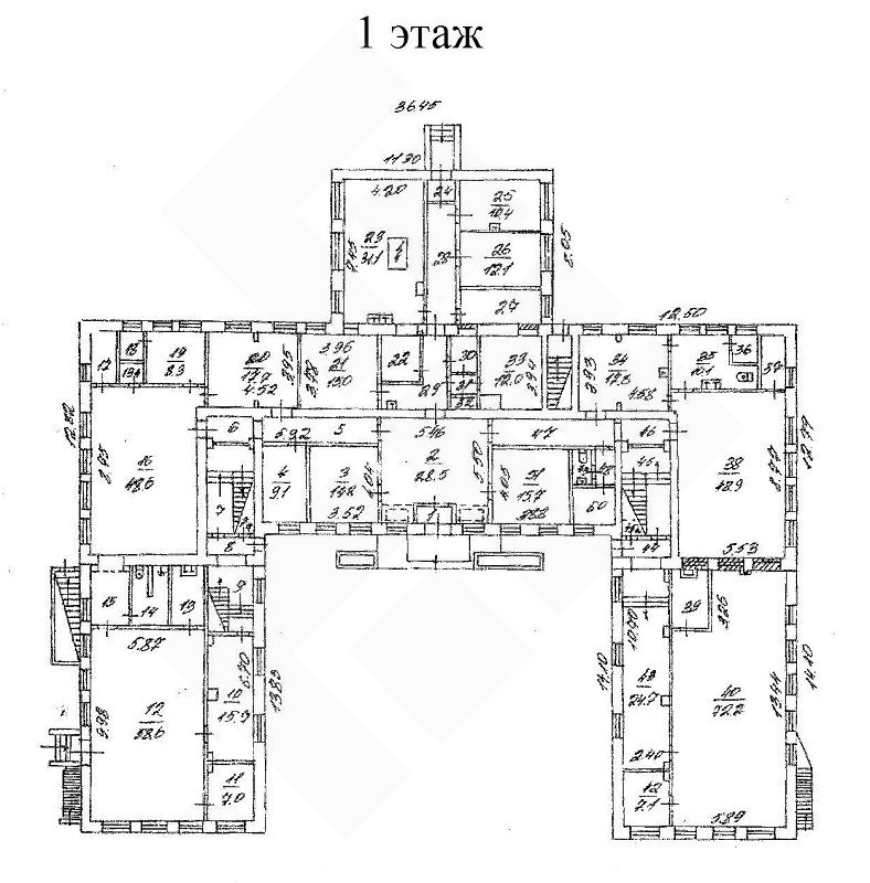 Общая площадь - 1335 кв.м (подвал и 2 этажа)