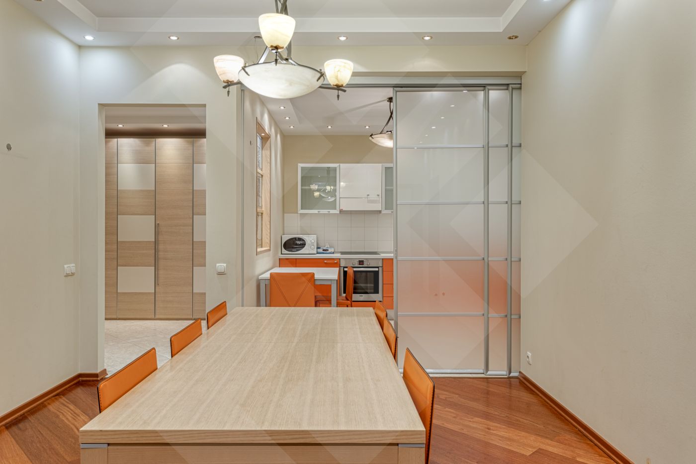 Вашему вниманию предлагается светлая квартира в одном из самых престижных районов Москвы. Малоквартирный современный дом с огороженной территорией. Светлая гостиная- столовая, соединенная с кухней, 2 спальни, 2 полных санузла, гардеробная, просторный холл с вместительными встроенными шкафами. Балкон. Квартира со вкусом меблирована и укомплектована всей бытовой техникой. Оснащена системой кондиционирования, Интернет, спутниковое телевидение. Презентабельная входная группа, охрана, видеонаблюдение, ухоженный внутренний двор. Подземный паркинг.