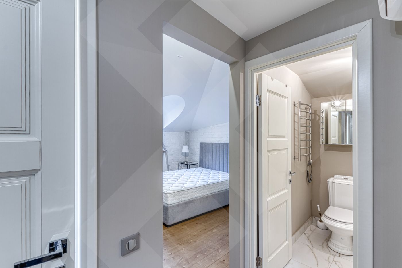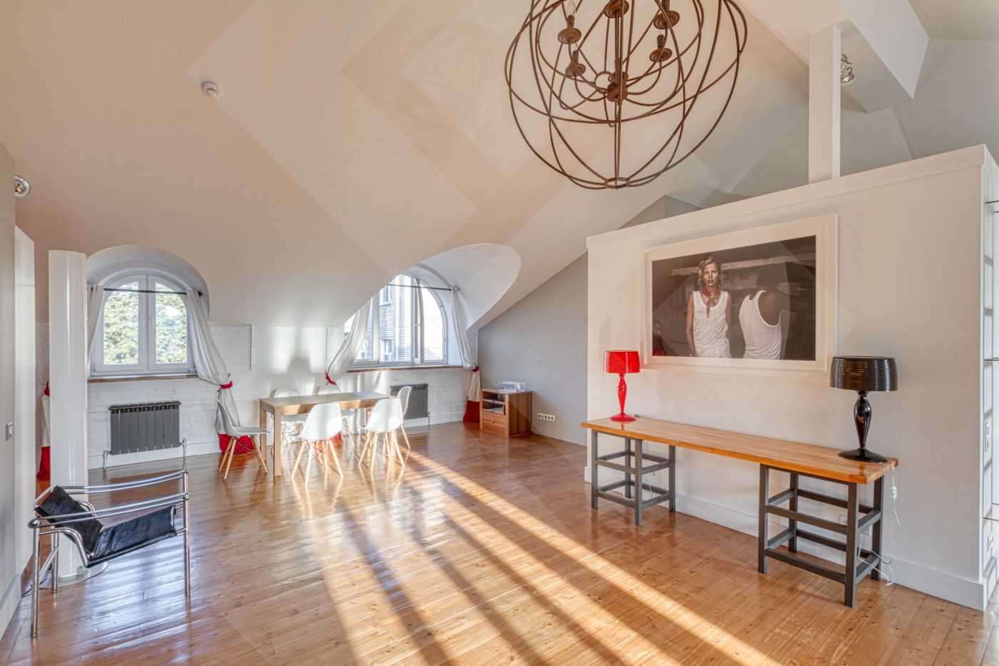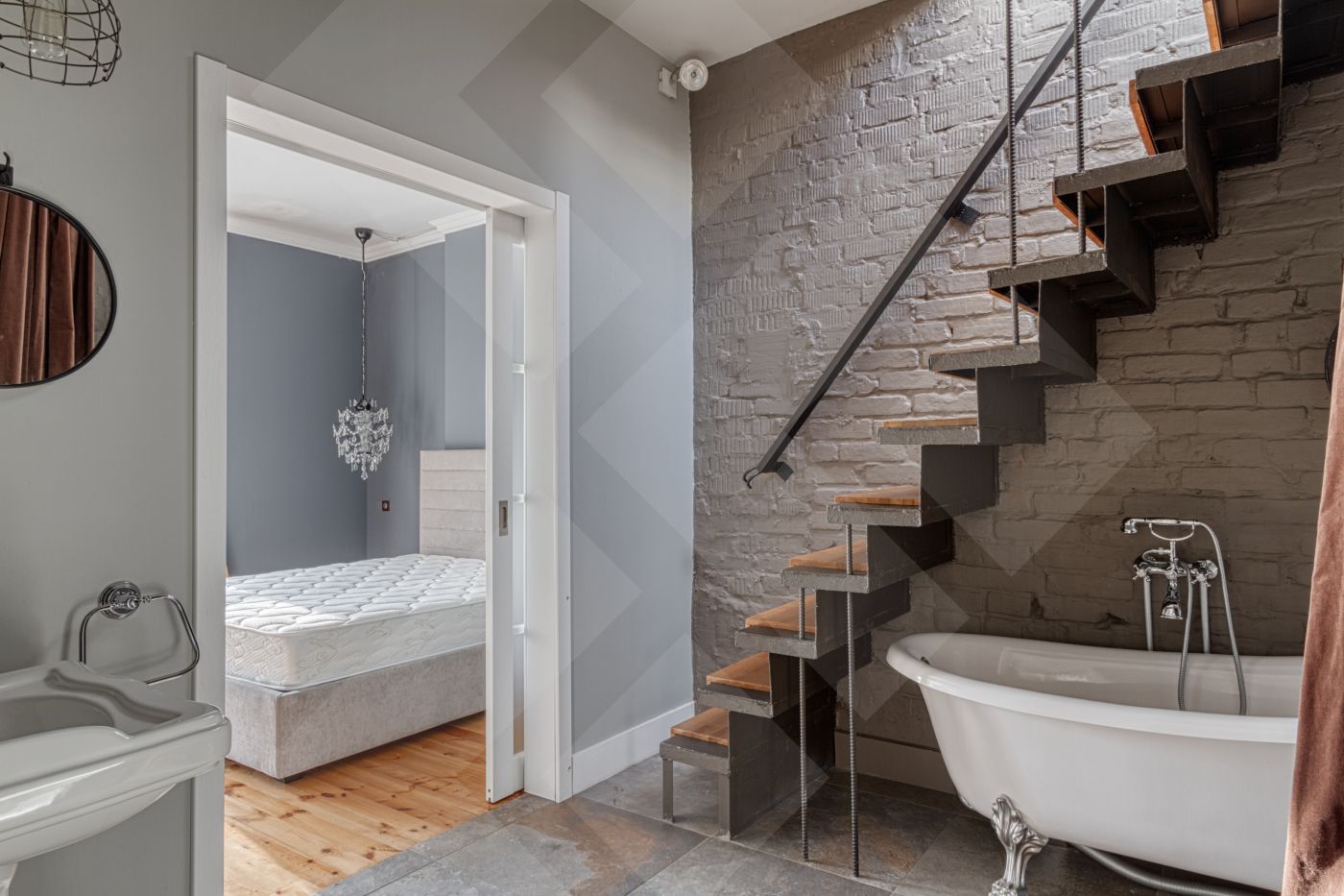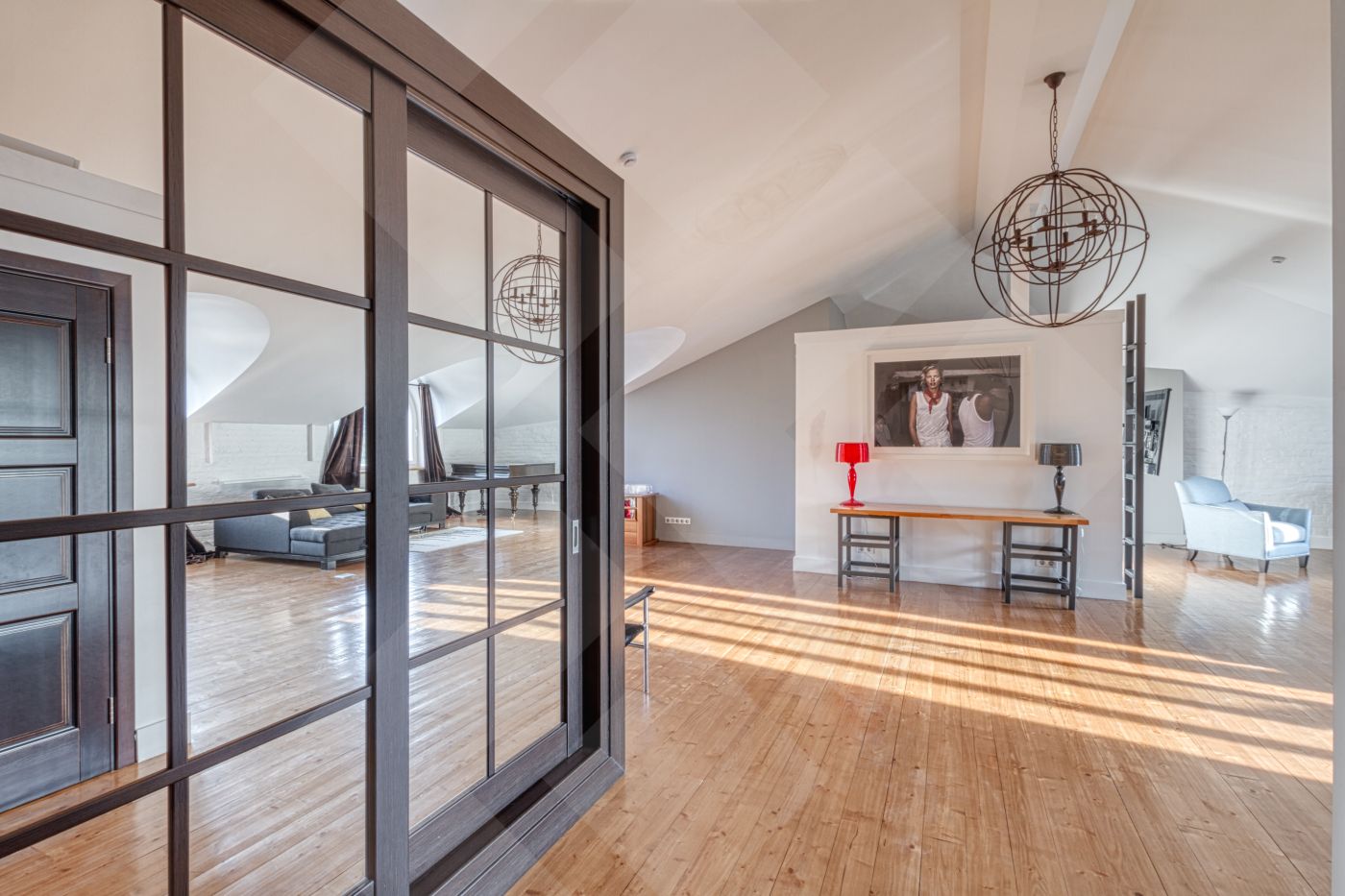 Предлагается в аренду стильная, просторная квартира-мансарда с террасой. Дизайн квартиры выполнен в стиле "Лофт". Гостиная совмещена со столовой зоной и зоной кухни. 2 спальни со своими санузлами и гардеробными, полноценный гостевой санузел c душевой и постирочной при входе в квартиру, бойлер. Квартира со вкусом меблирована, дополнена стильными предметами интерьера и укомплектована всей бытовой техникой ведущих европейских производителей. Оснащена системой кондиционирования, система "теплый пол". Окна выходят на 2 стороны. Не шумно, вторая линия домов.
