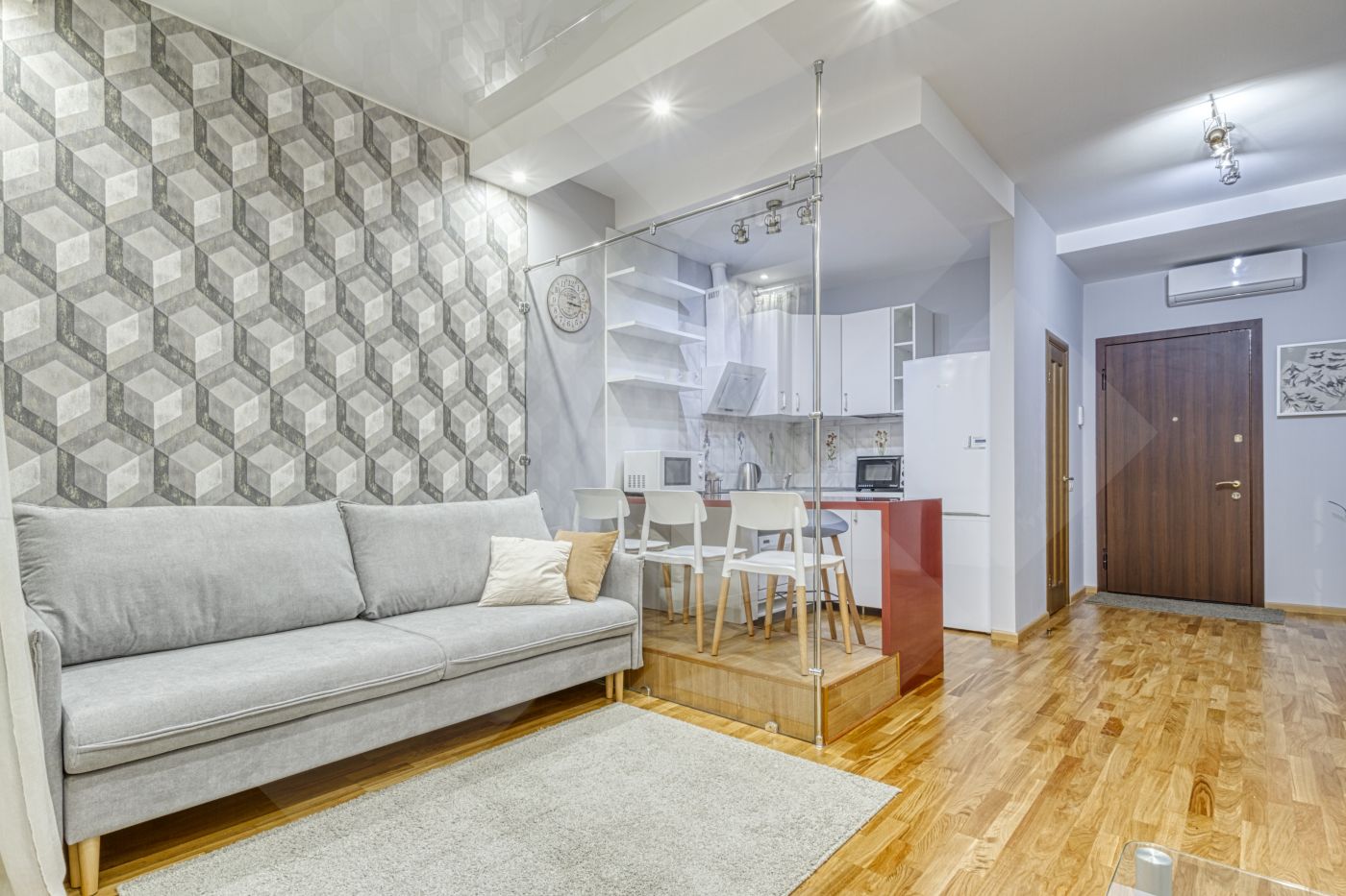 Оксана Белова. Предлагается в аренду стильная квартира в ЖК Водный. Планировка: гостиная студийного плана и спальня. Сделан качественный европейский ремонт с применением дорогих материалов. Пол- дубовая паркетная доска. Кухонный гарнитур со всей необходимой бытовой техникой от ведущих мировых производителей. Совмещенный сан узел с французской сантехникой, испанская ванна. Кондиционер. Застекленная лоджия. Презентабельная входная группа, охрана. Подземный паркинг. Лот 32237