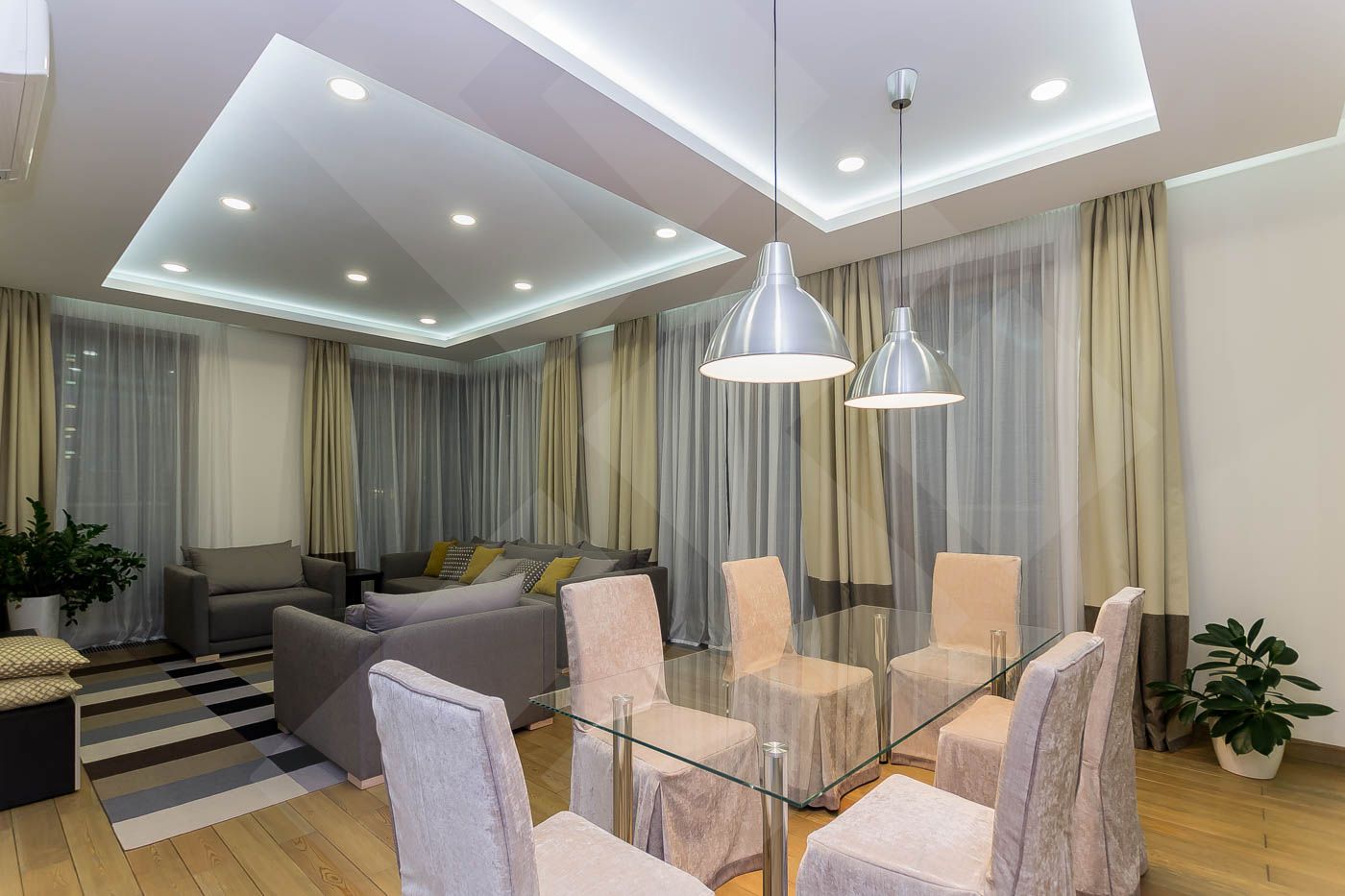 В квартире выполнен качественный ремонт, удобная планировка: гостиная, кухня, раздвижная конструкция дверей позволяет изолировать или объединять пространство, 3 спальни, вместительная гардеробная,2 полноценных сан. узла и гостевой сан. узел., панорамное остекление, балкон.