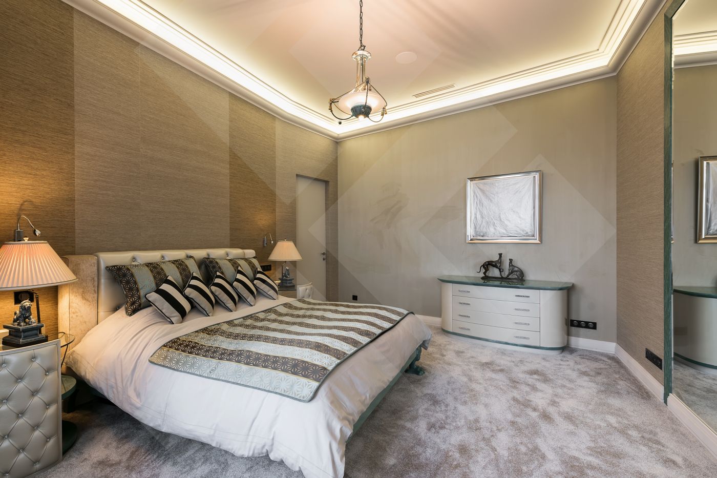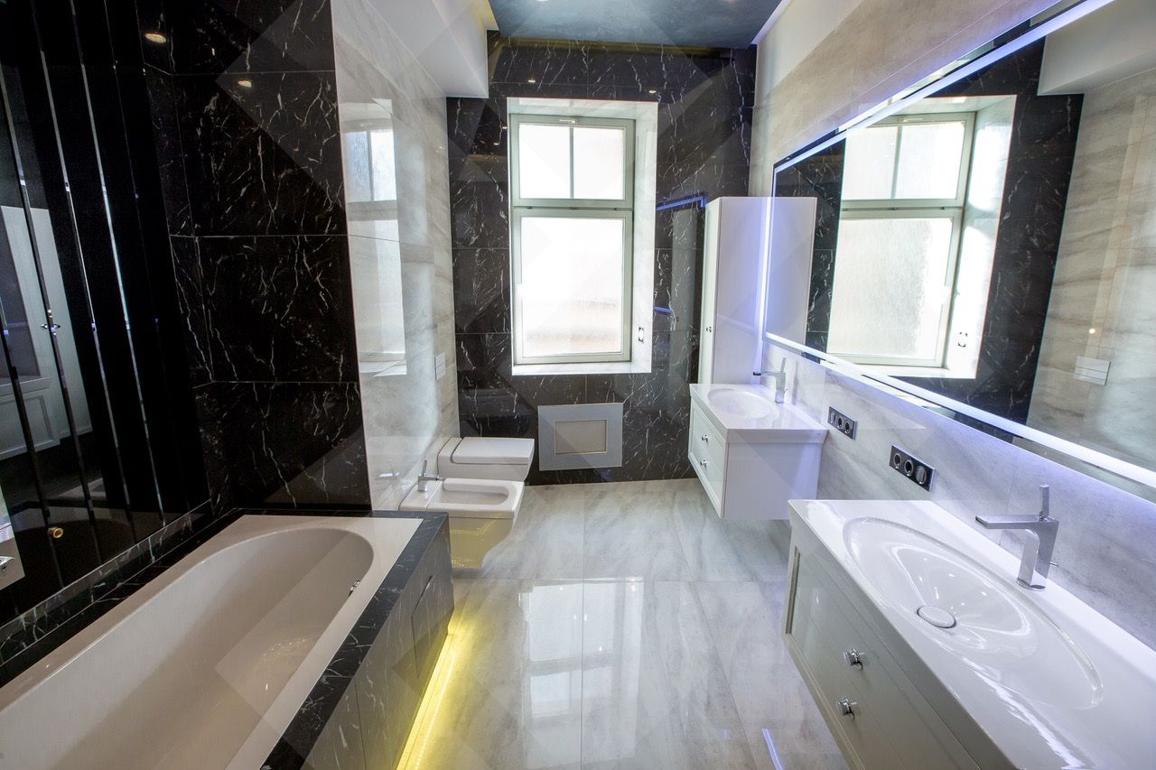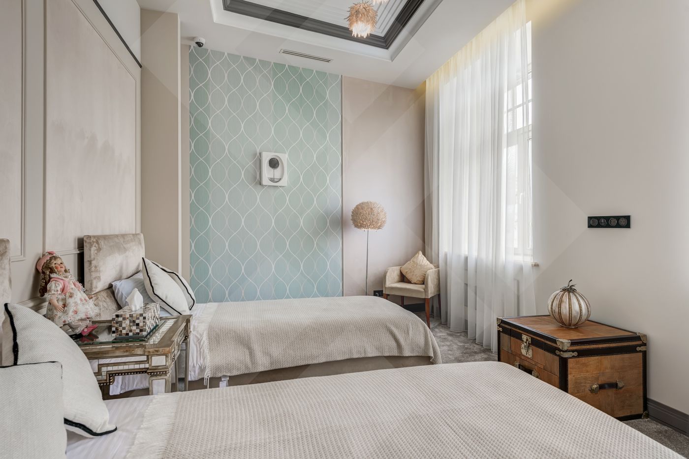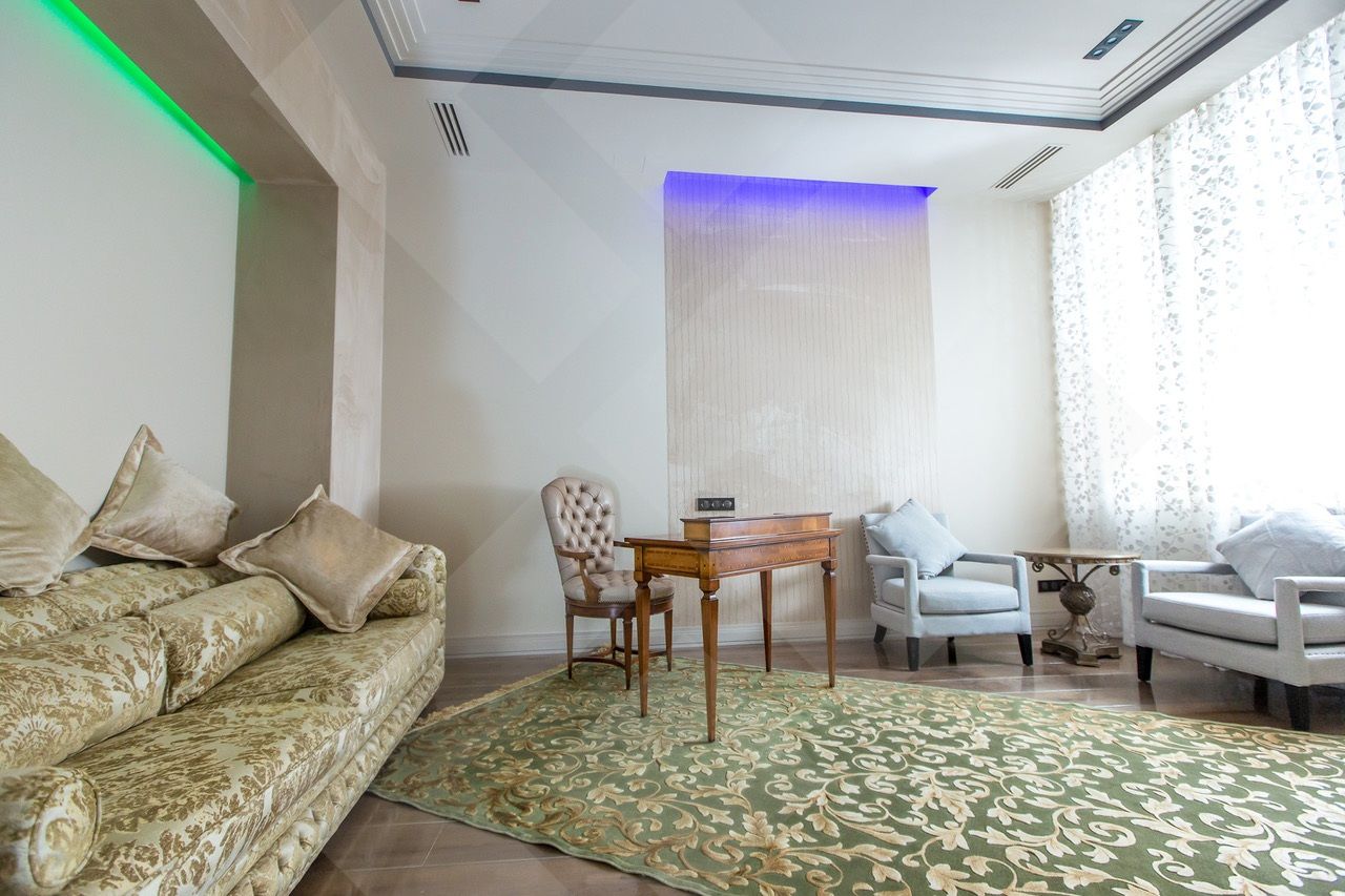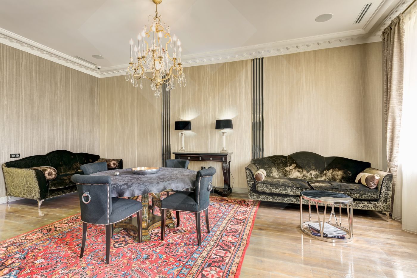 В квартире сделана идеальная планировка: просторная гостиная с действующим камином, две спальни с своими санузлами, гостевая/детская спальня, кабинет, изолированная кухня с самым профессиональным оборудованием, большой гардероб, гостевой санузел.