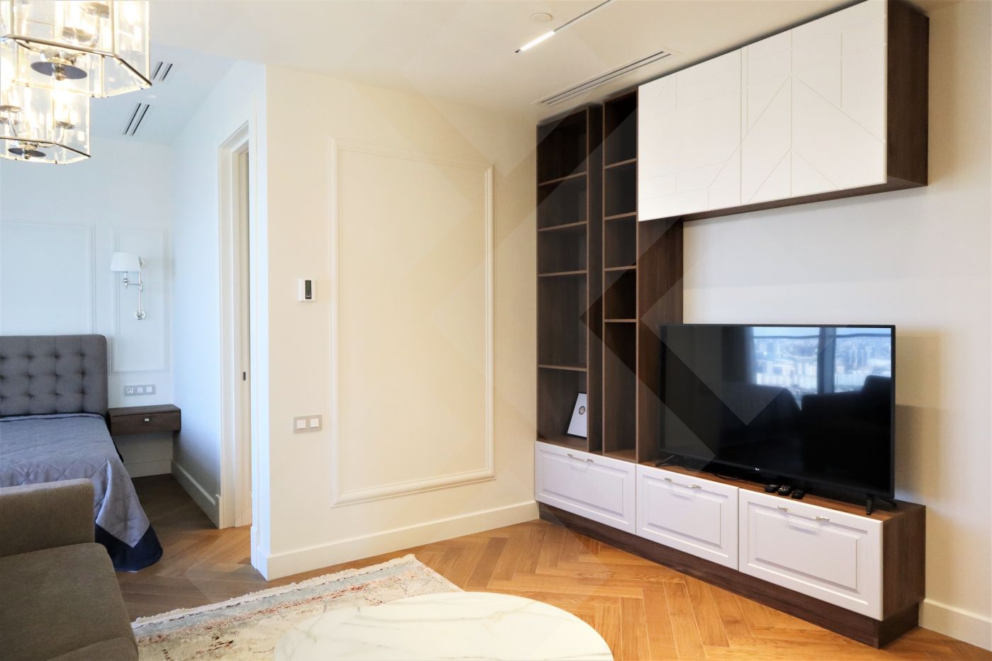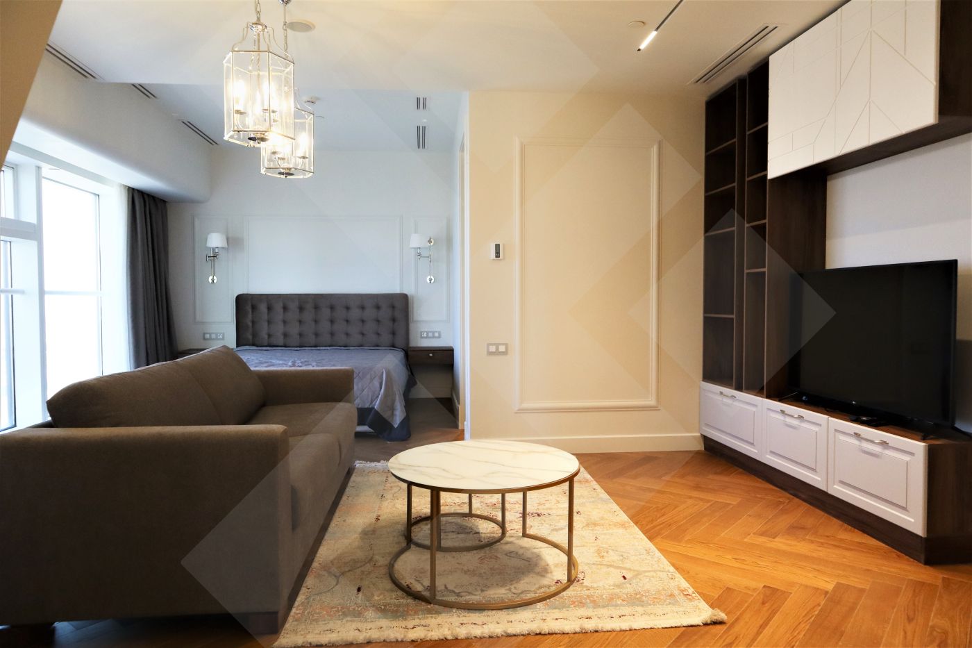 Апартаменты состоят из: просторной кухни-столовой-гостиной, одной спальни, одного полноценного санузла и гардеробной.