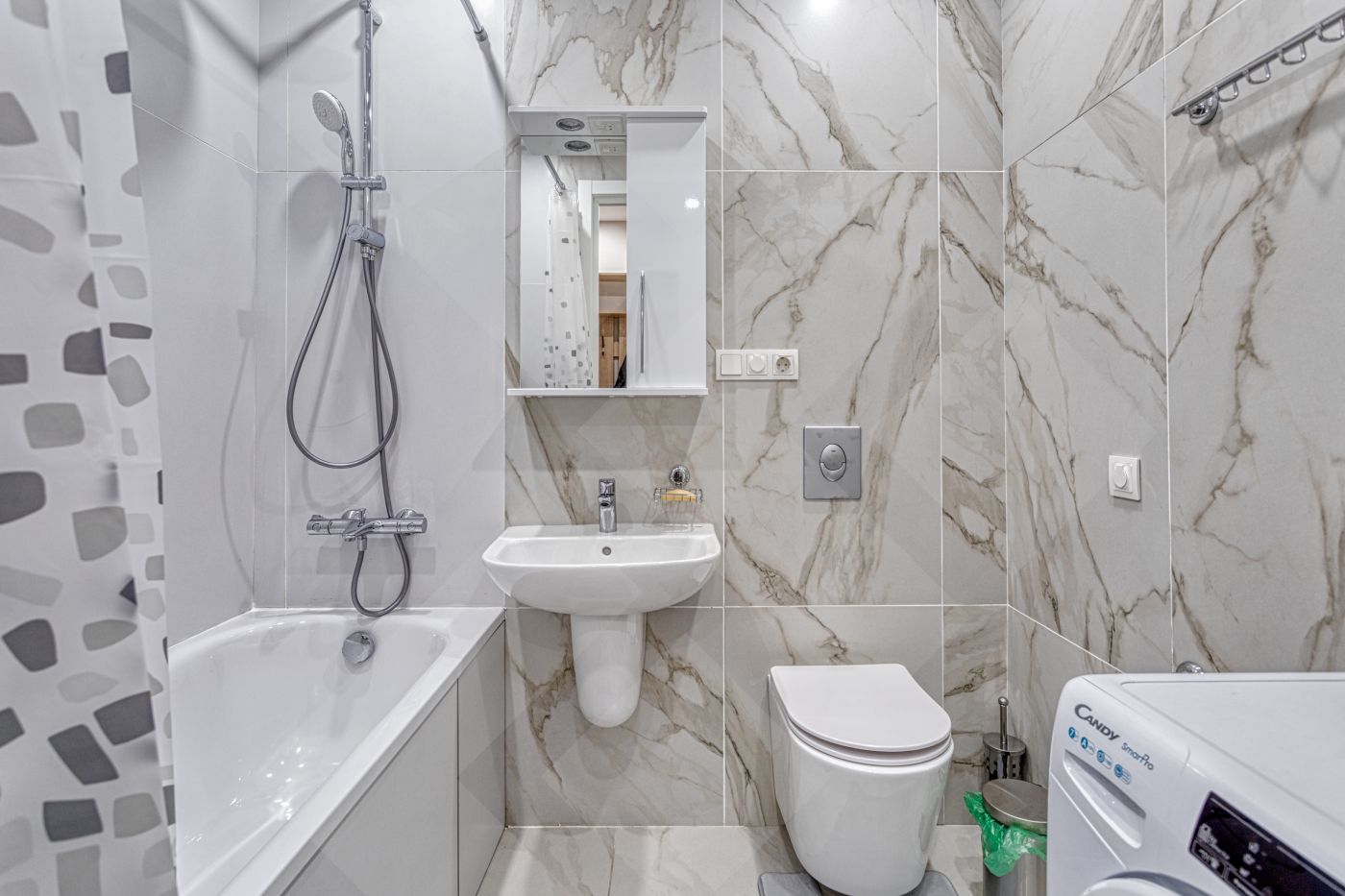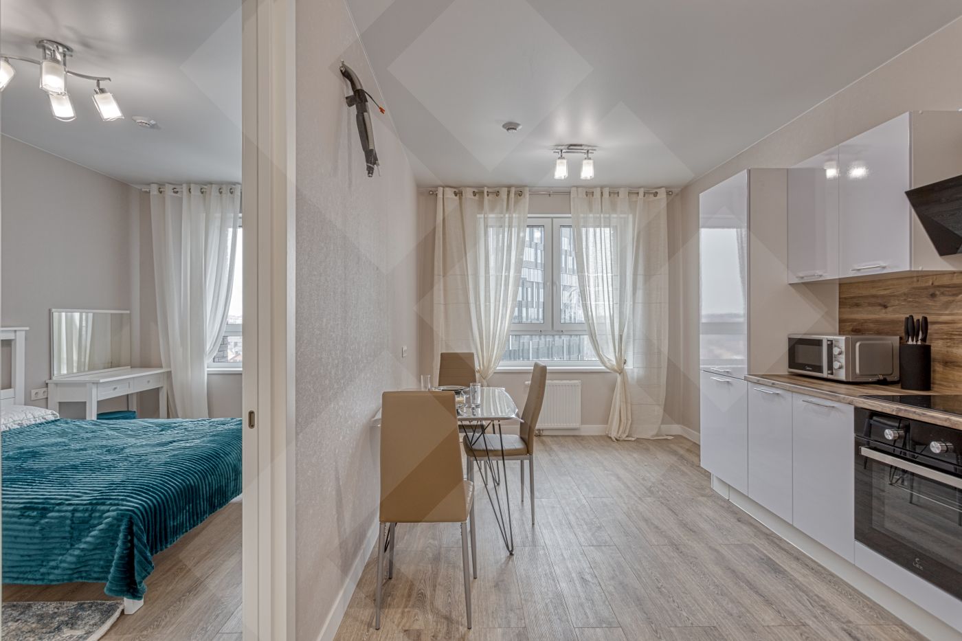 Квартира оборудована всей необходимой мебелью и техникой.