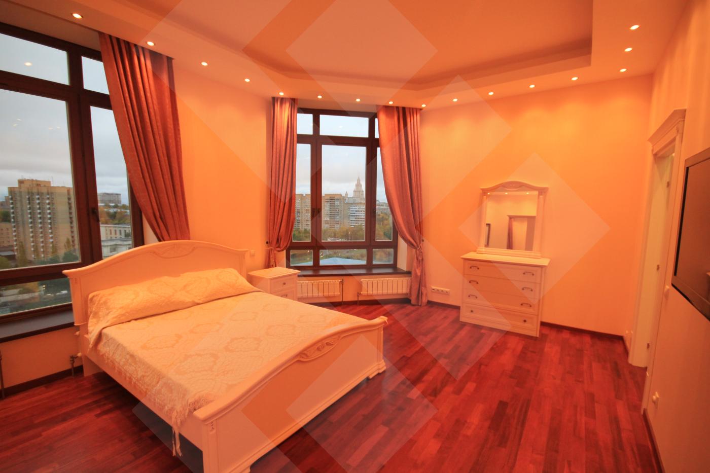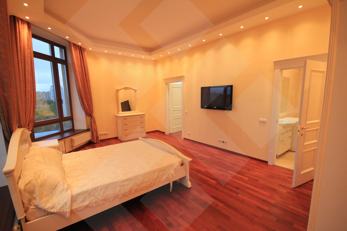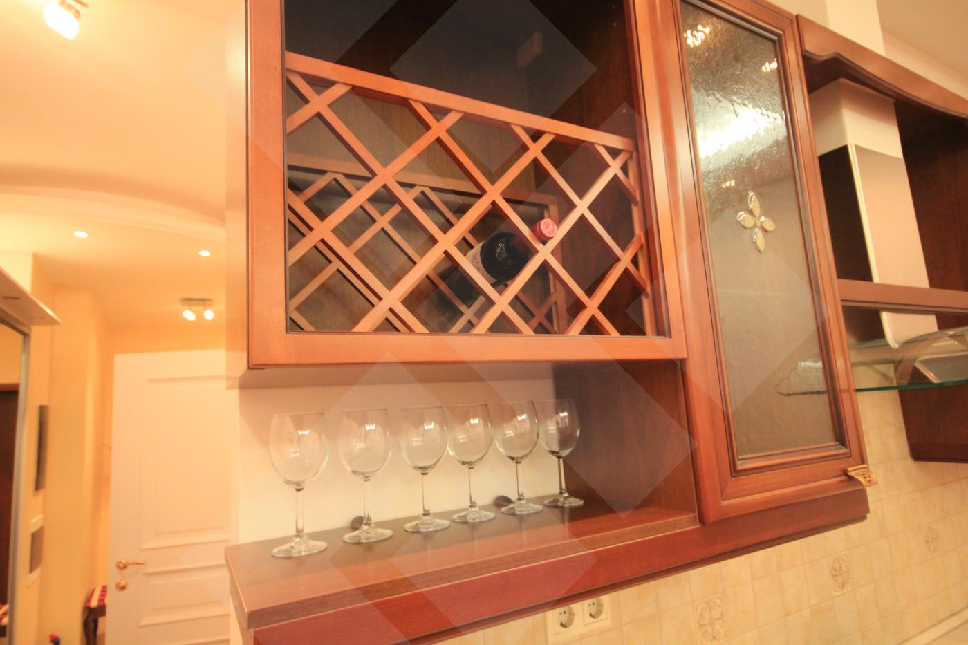 Просторный зал, совмещенный с кухней, просторная светлая спальня, 2 санузла, панорамные окна. Ремонт в классическом стиле. На полу паркет - красное дерево.