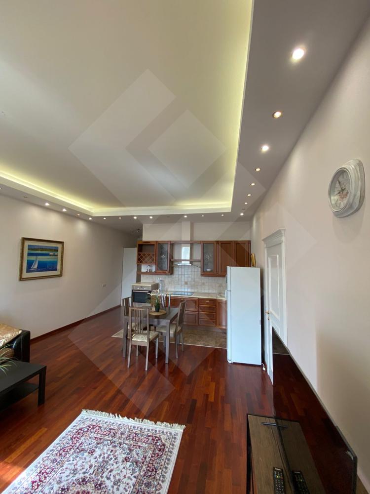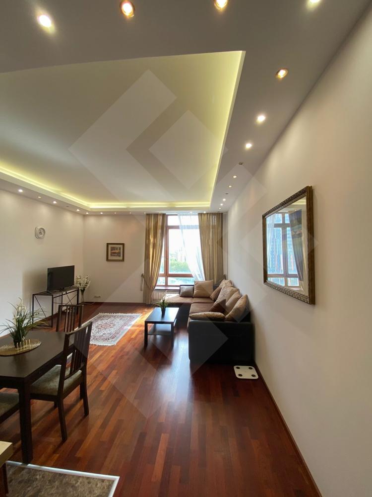 Квартира полностью меблирована и укомплектована всей необходимой бытовой техникой: стиральная машина с сушкой, посудомоечная машина, холодильник, канальное кондиционирование, два телевизора, высокоскоростной интернет.