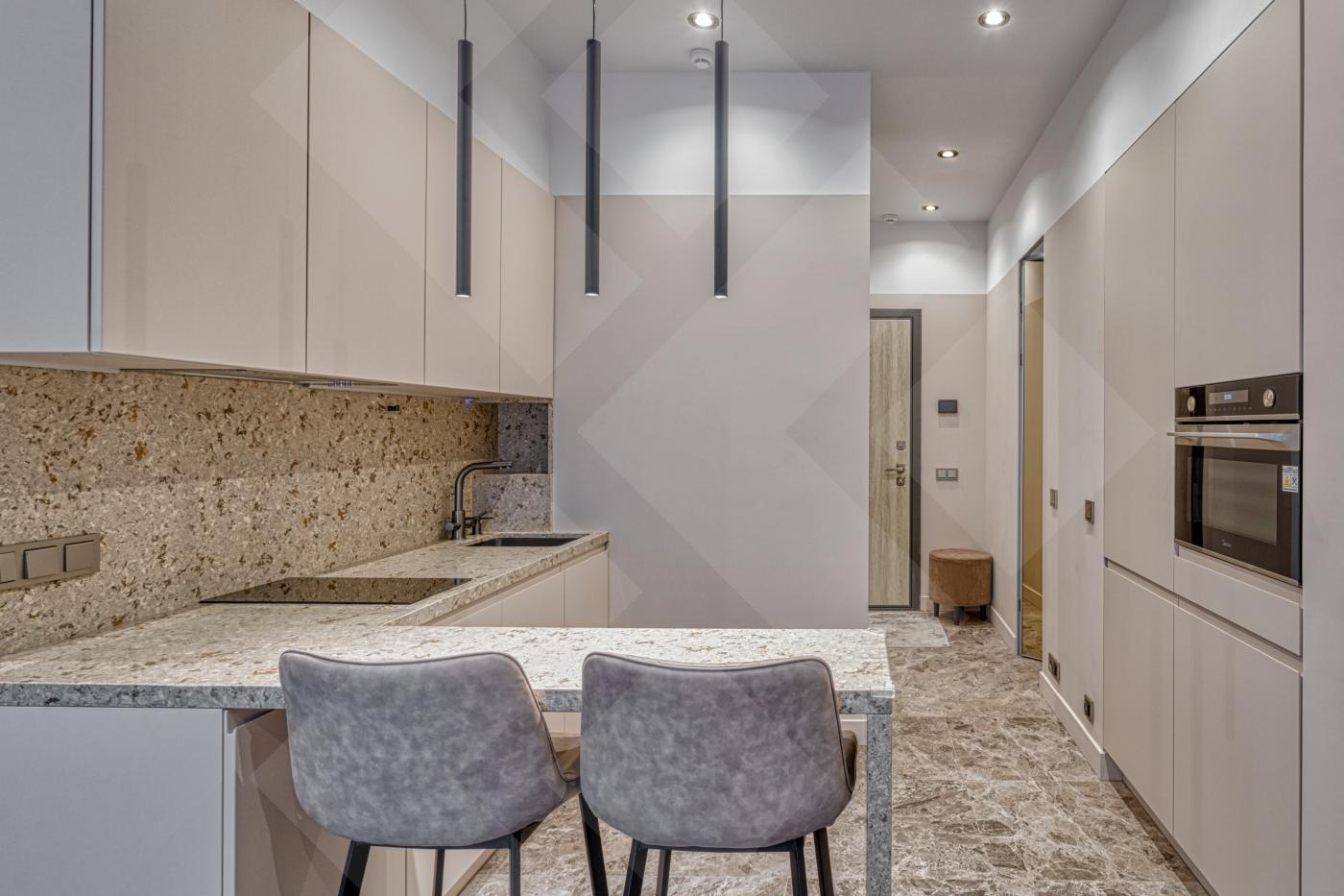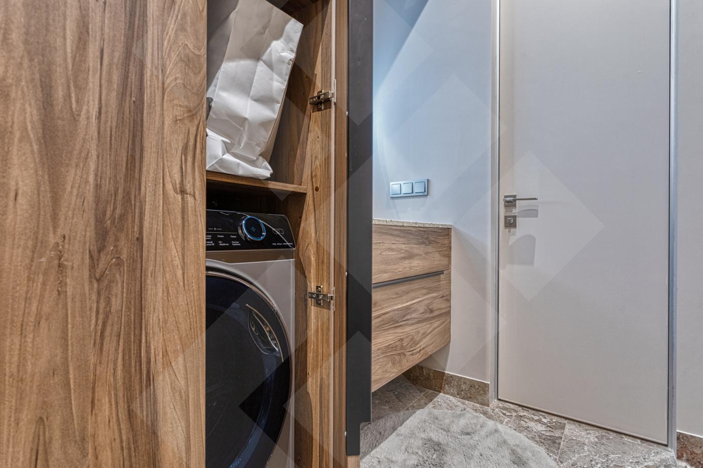 Квартира оснащена всей необходимой бытовой техникой: стиральная машина с функцией сушки, бойлер, посудомоечная машина, варочная поверхность, духовой шкаф/микроволновая печь, посудомоечная машина, чайник, тв.