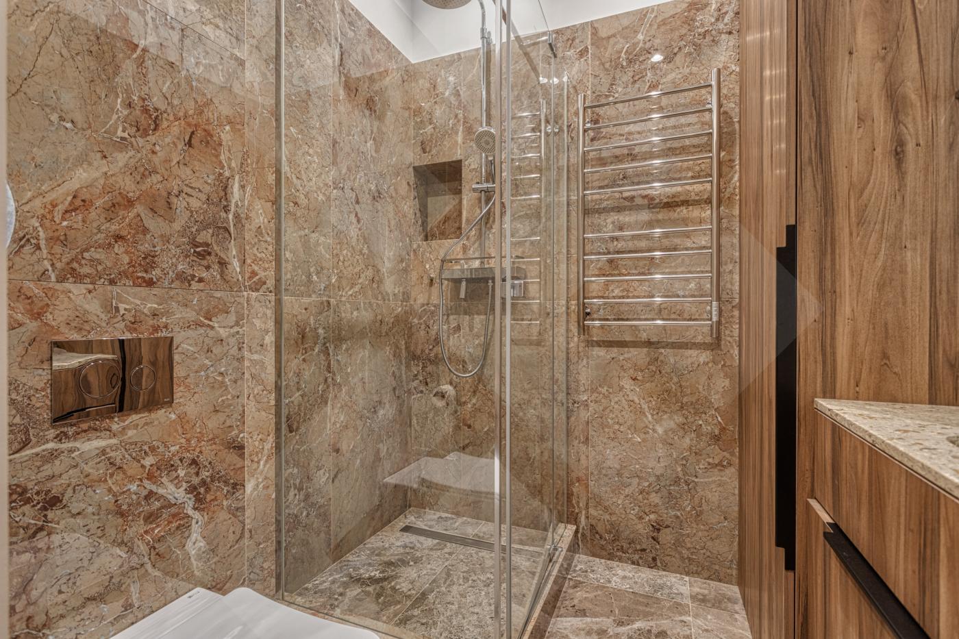 С/у с душем, стиральная машина с функцией сушки, паровой утюг.