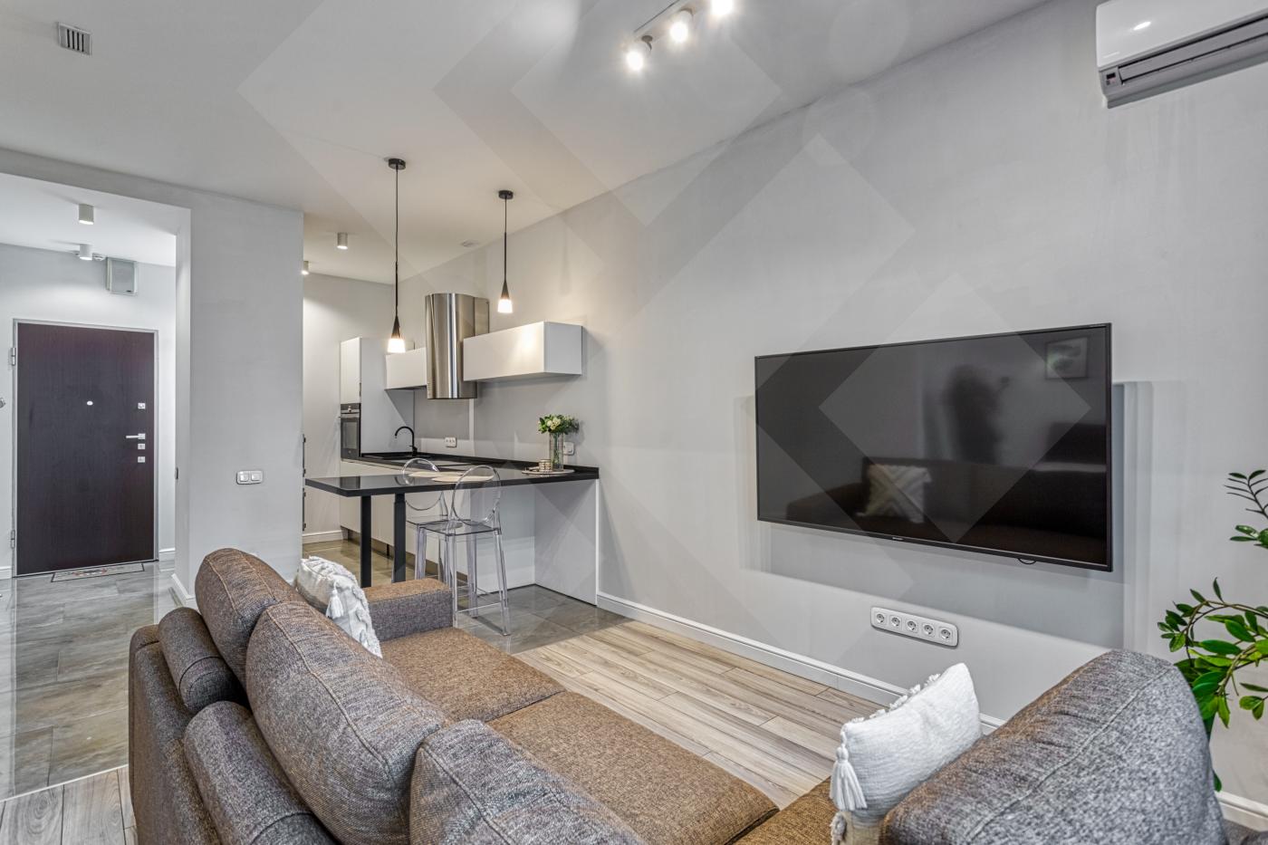 Квартира полностью оборудована мебелью и техникой для комфортного проживания.