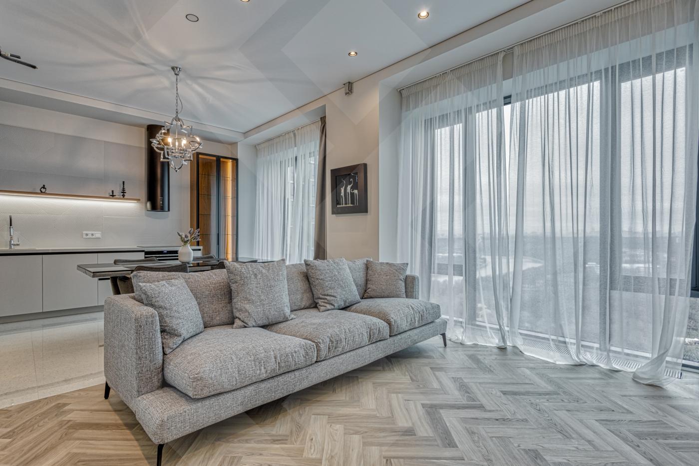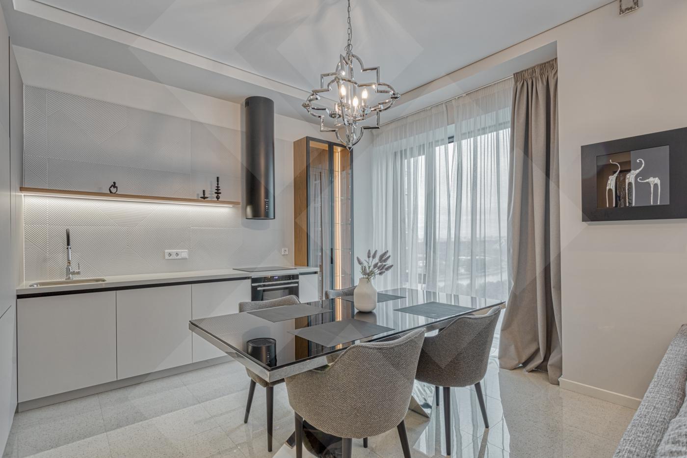 В квартире выполнен дизайнерский ремонт. Полностью оборудована всей необходимой техникой и мебелью. Установлены кондиционеры. Панорамные окна в пол!