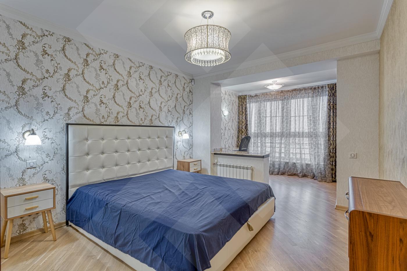 • Взрослая спальня с вместительной гардеробной, большой кроватью и удобным рабочим местом — отличное пространство для отдыха и работы.