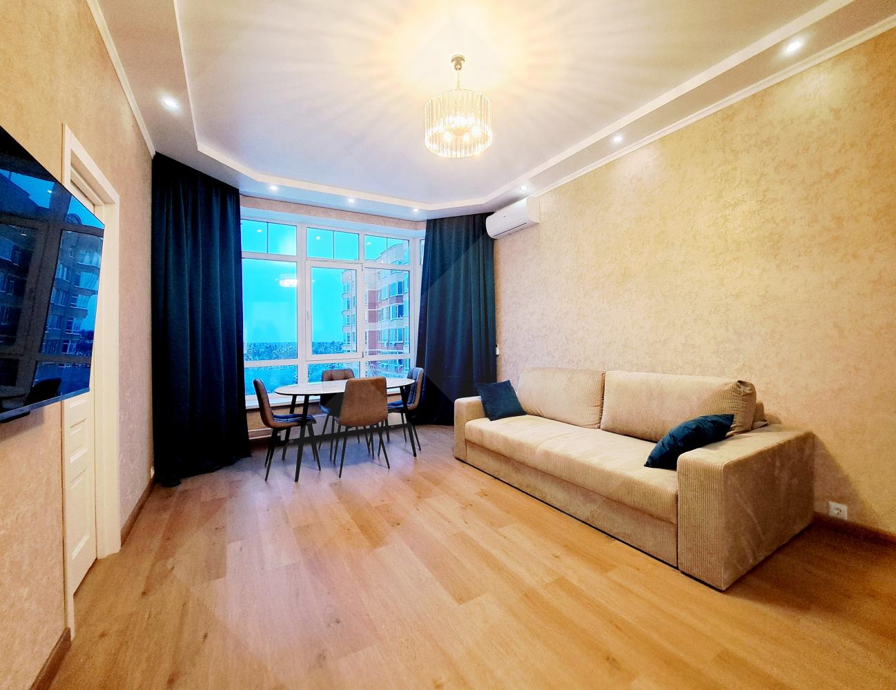 Квартира со свежим дизайнерским ремонтом, мебелью и бытовой техникой как на кухне, так и в комнатах (смотрите фото)