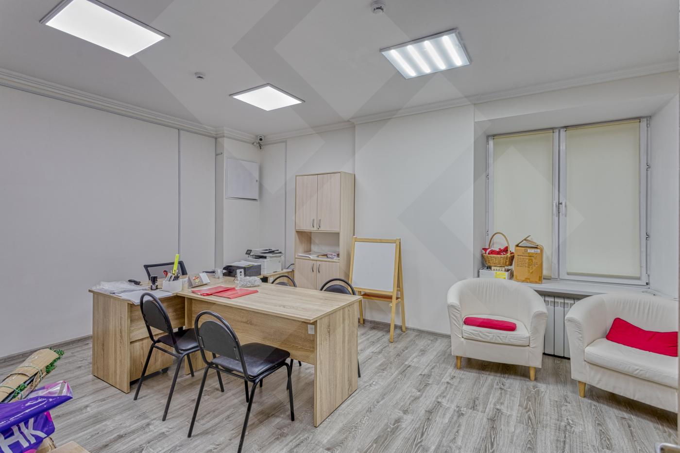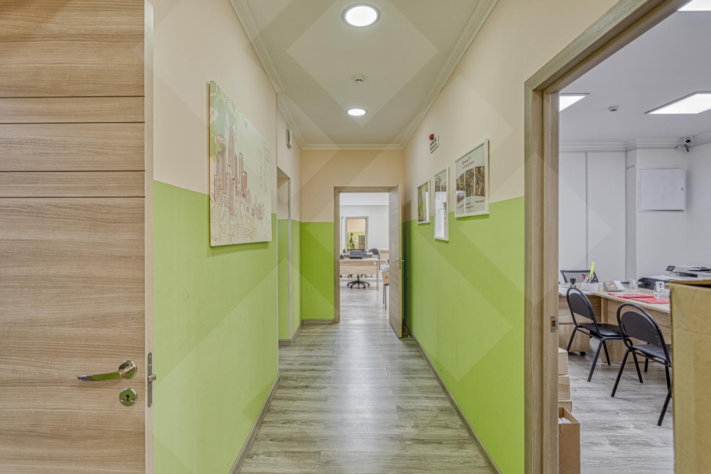 Входная группа, гардеробная, ресепшн, 4 кабинета разной площади каждый со своим окном, комната свободного назначения ( 5-ый кабинет), склад, кухня,
