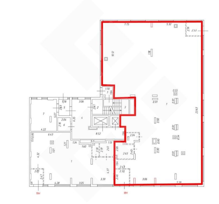 Общая площадь - 103,2 кв.м (2 смежных помещения 48+55 кв.м)
