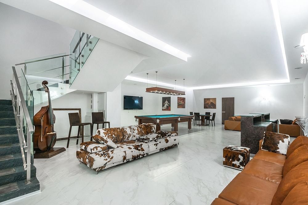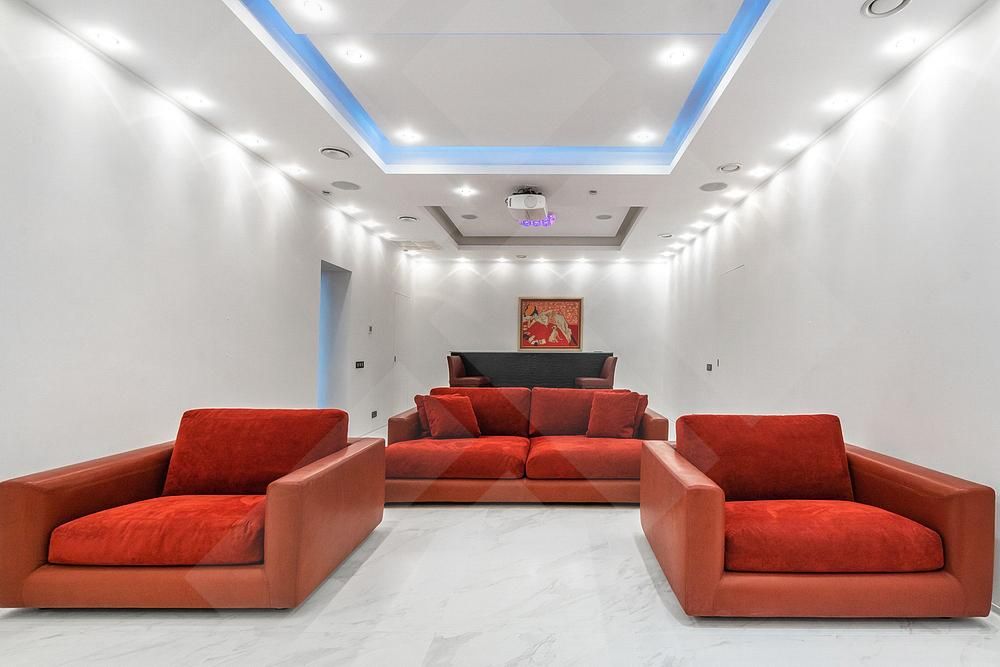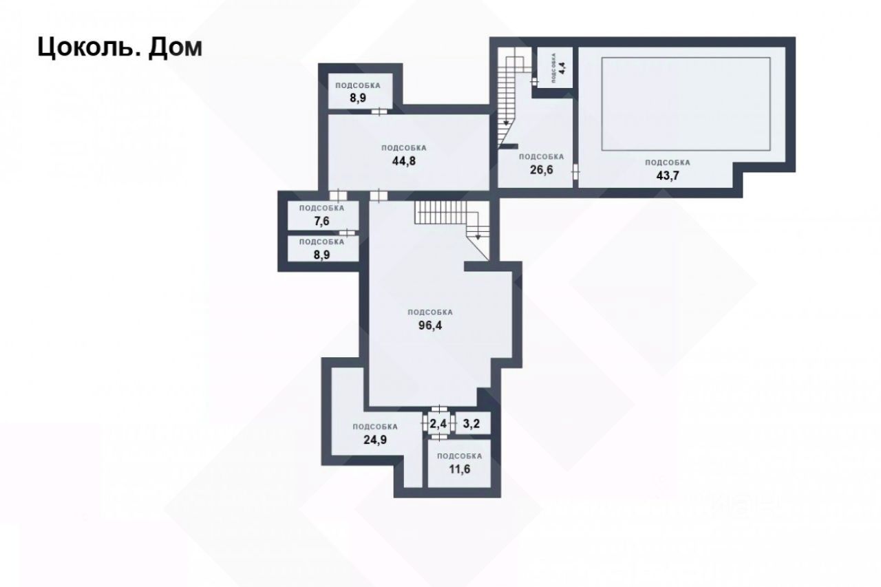 Цоколь: бильярдная, кинотеатр + бар, винный погреб, прачечная, кладовая, сейфовая комната;