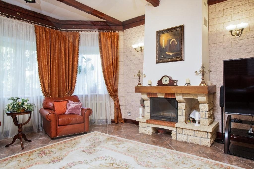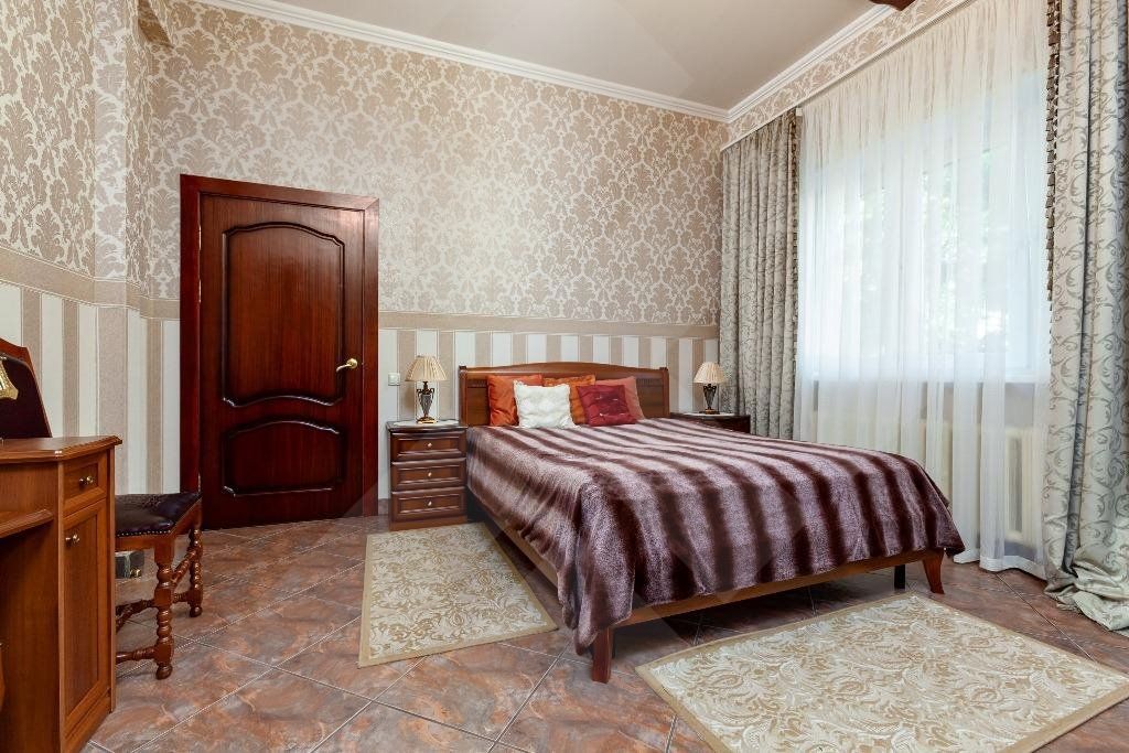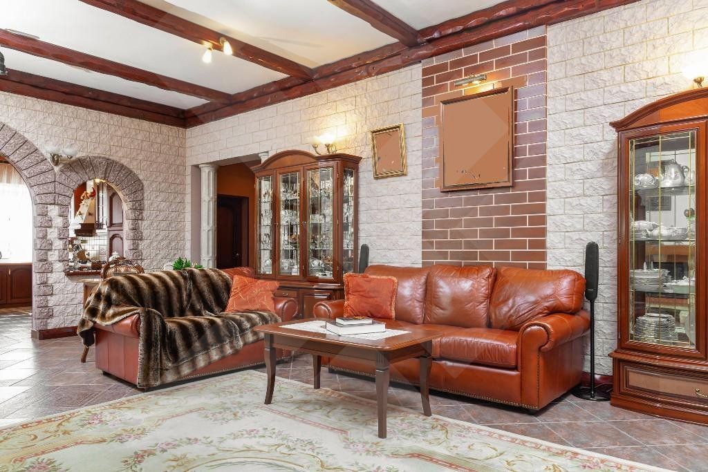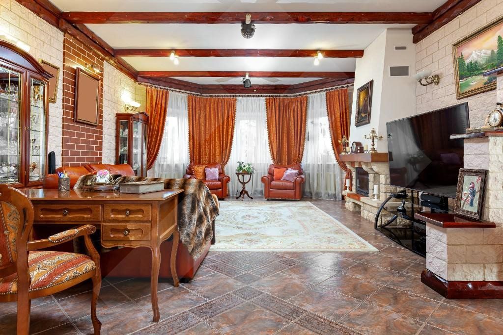Коттедж, хорошее состояние, с гаражом на два автомобиля, цоколь как отдельная квартира для помощников, 6 спален, два кабинета, гостиная с камином, две комнаты свободного назначения, тренажерный зал, участок правильной формы, ландшафтный дизайн, зона барбекю с беседкой, есть второй дом для персонала 120 кв. м. со всеми коммуникациями стоянка на 4 автомобиля.
