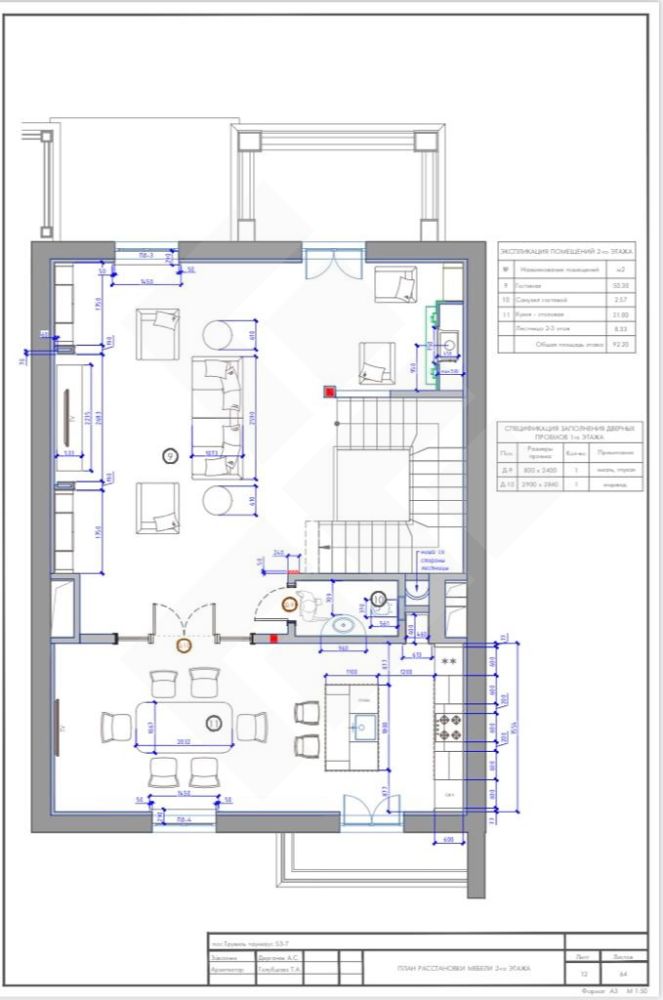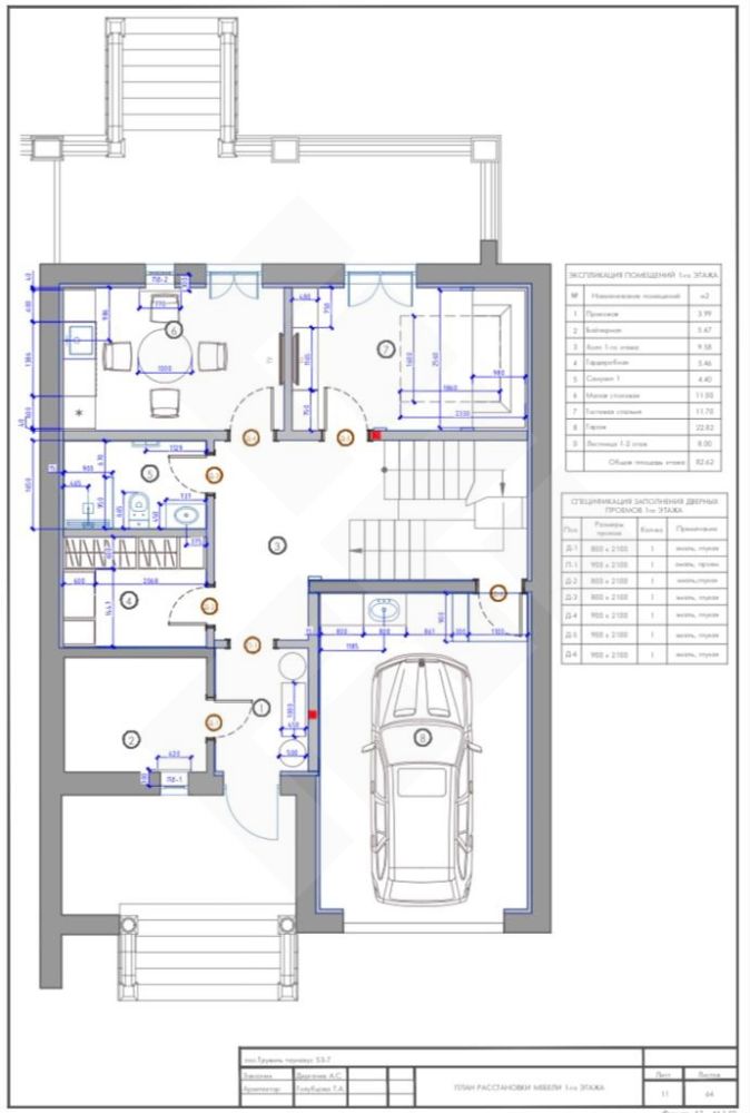 1 этаж: Прихожая, кухня, гостиная- столовая, лестничный холл, терраса, бойлерная.