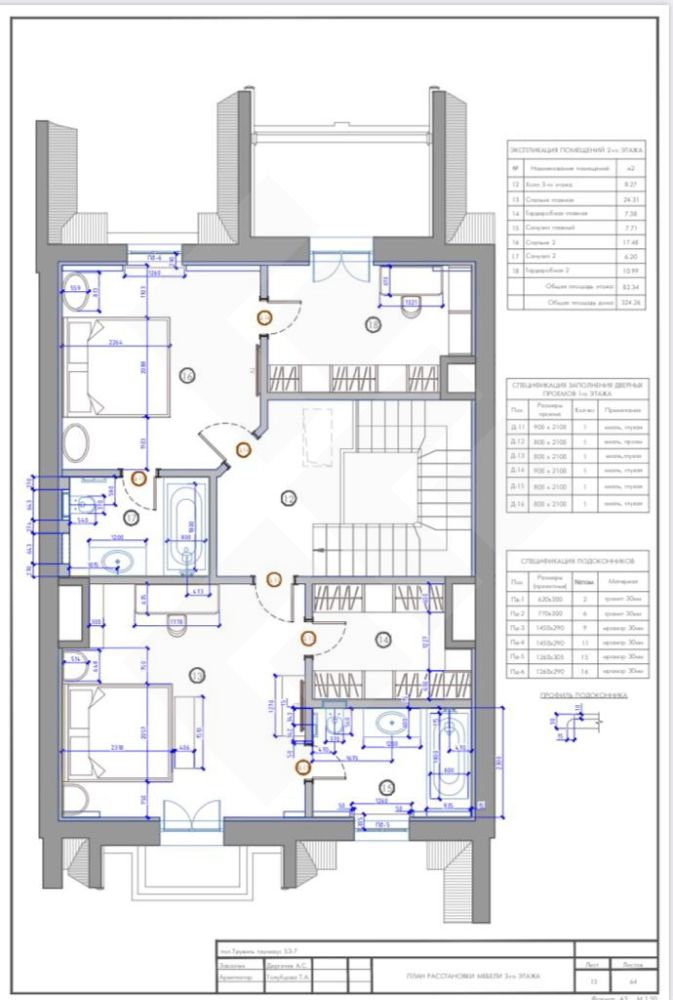 2 этаж: мастер спальня, детская, гардеробная, лестничный холл, мастер санузел, детский санузел.