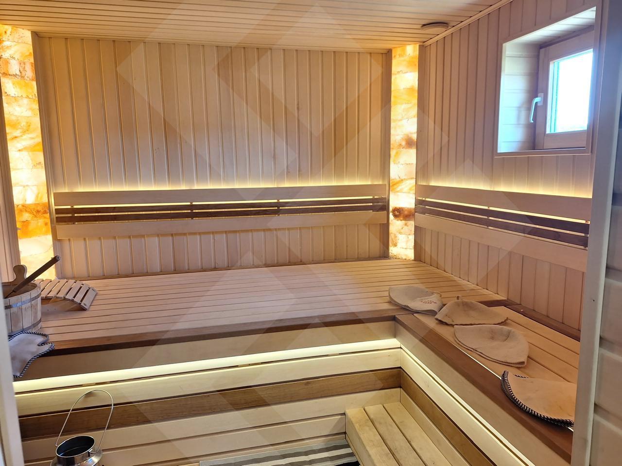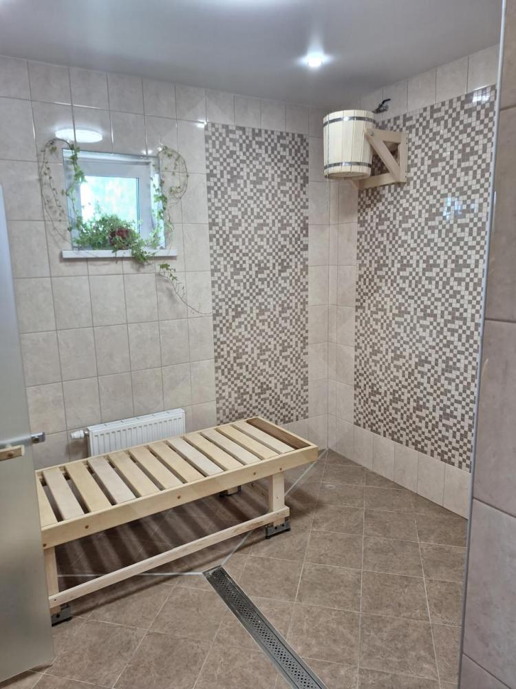 На участке также имеется просторная баня площадью 80 квадратных метров, построенная из профилированного бруса. Это идеальное место для отдыха после трудового дня или встреч с друзьями.