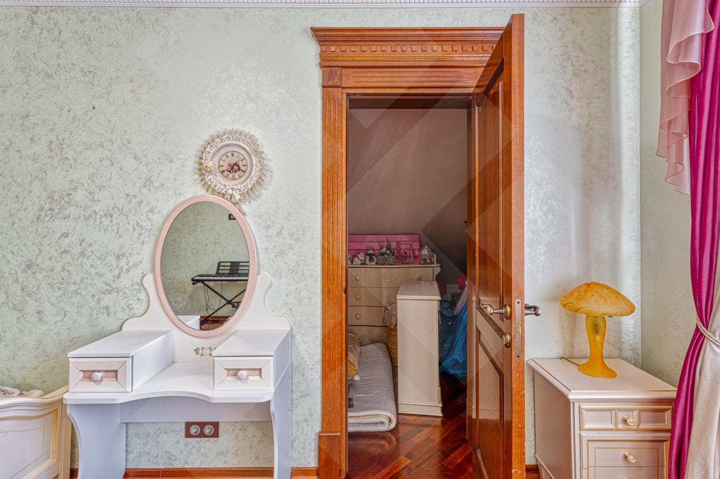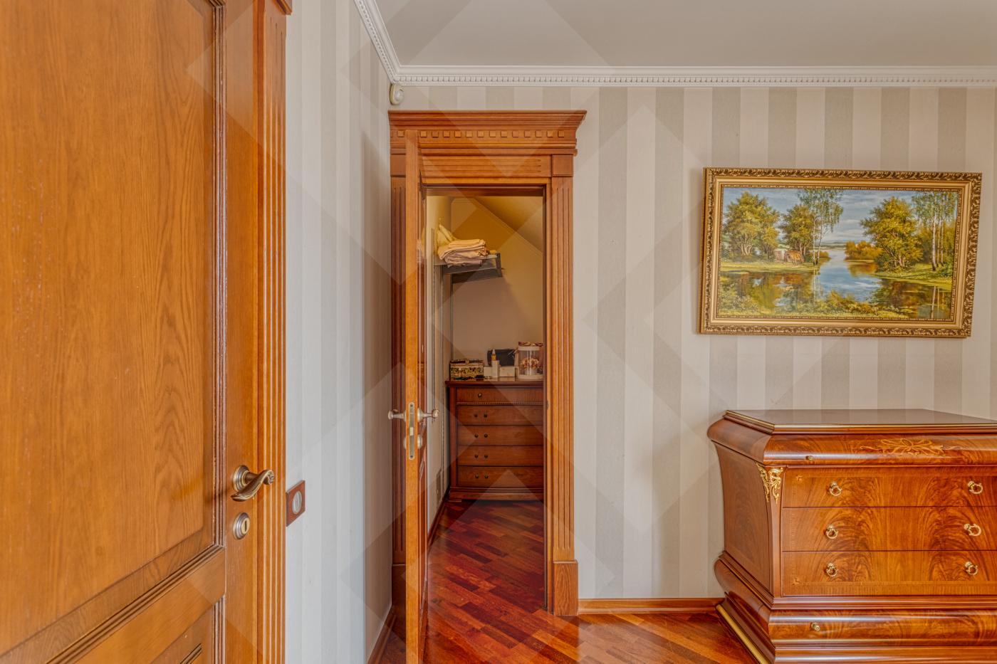 Со вторым этажом дома нас знакомит лестница из натурального дерева и далее представлены три спальни, гардеробные, выход на большую террасу в одной из спален.