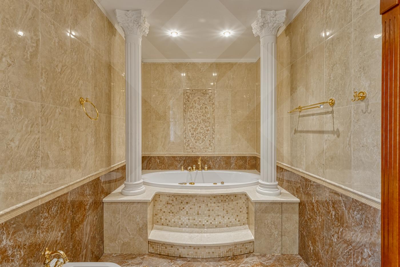 На 1 этаже расположились просторная кухня-столовая (оборудована всей необходимой техникой Miele и Kuppersbusch: холодильник, посудомоечная машина, плита, духовой шкаф, места для хранения) гостиная, просторный холл, прихожая, ванная. Вся мебель премиального испанского бренда Vicente Zaragoza. Высота потолков 2,6м. На полу паркетная доска и натуральный камень. В доме установлены кондиционеры Mitsubishi Electric. Три санузла в основном доме, два с душем и один с джакузи.