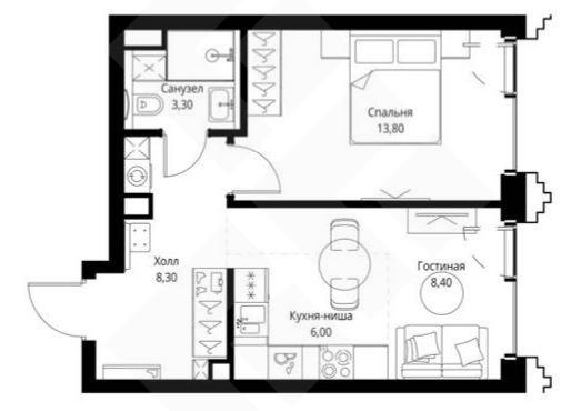 Общая площадь: 39,5 м²