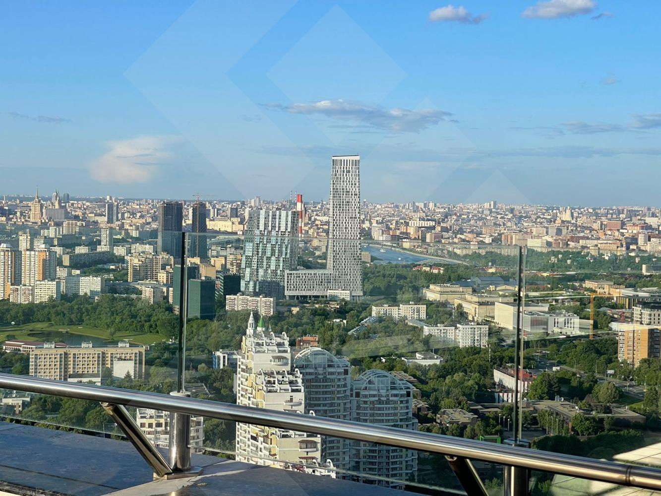 Общей площадью 236 м² из которых 186 м² жилой зоны и терраса по периметру площадью 140 м², на 37 этаже с панорамными обзорами на МГУ, Москва-Сити и Поклонную гору.