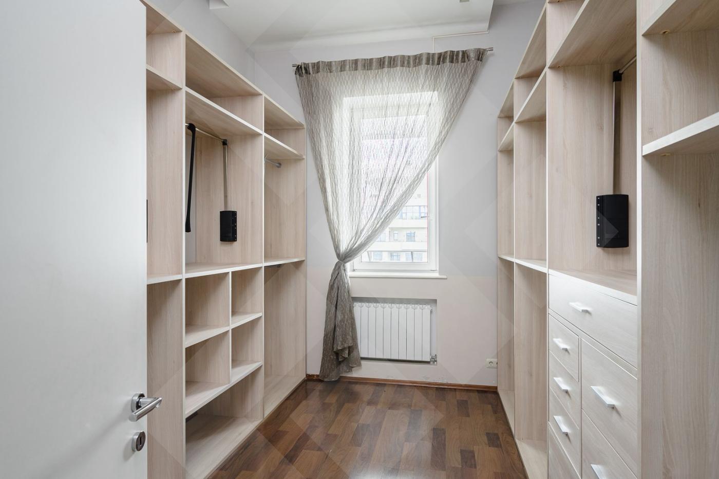 В квартире продуманная планировка: просторная кухня, гостиная, 2 изолированные спальни, 2 ванные комнаты, 3 гардеробные (одна из которых с окном, и ее можно переделать в кабинет), кладовка, гостевой санузел.