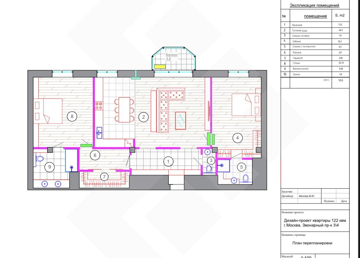 Планировка включает в себя просторную кухню–гостиную, две спальни (каждая со своим сан узлом), гостевой санузел, гардеробную. Квартира полностью оснащена бытовой техникой от лучших мировых производителей, и меблирована дизайнерской мебелью и предметами интерьера.