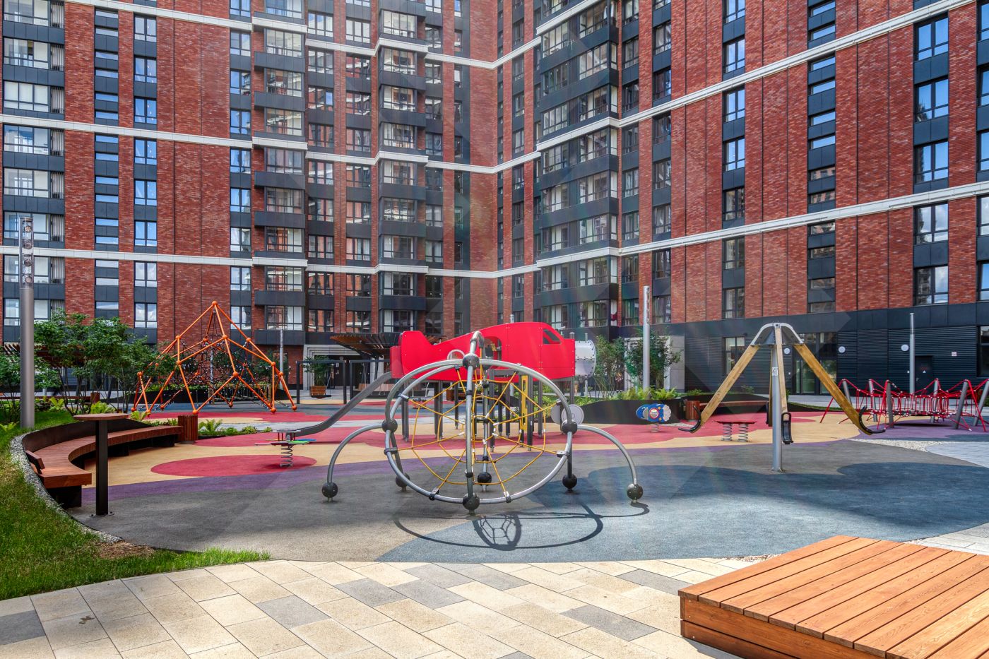 На территории комплекса расположен детский сад и школа, собственный парк, фонтан, амфитеатр, зона выгула и дрессировки собак, work out зона, баскетбольно- волейбольная площадка. При каждом жилом доме оборудована детская игровая площадка с песочницей, качелями.