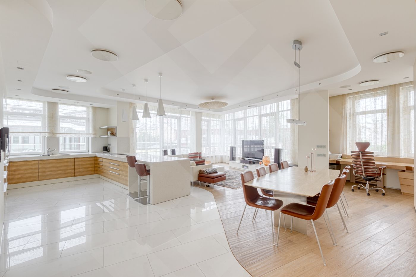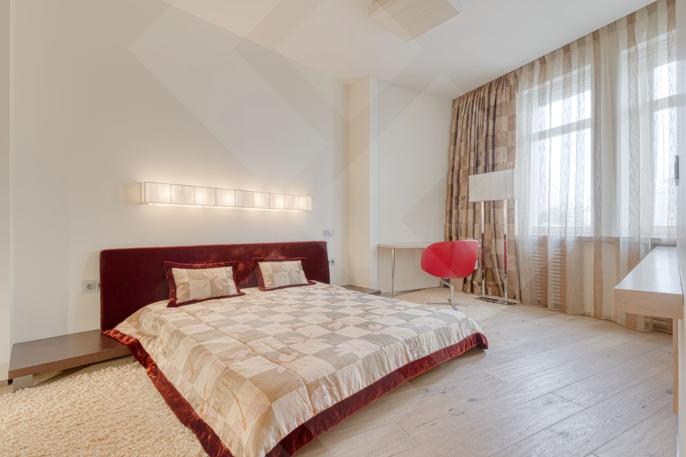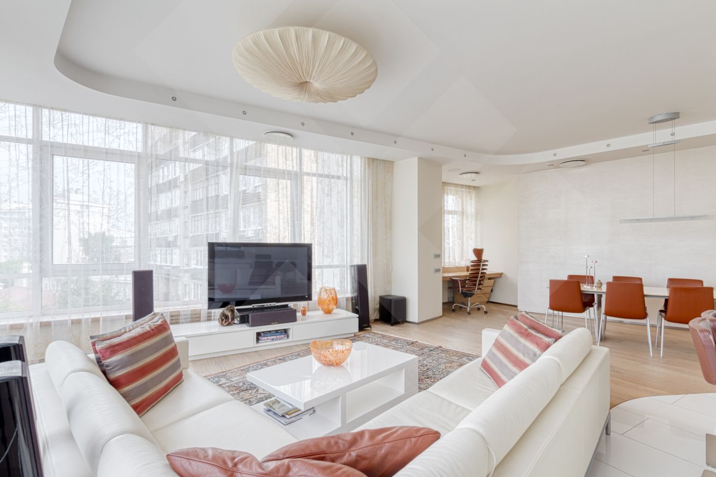 Квартира со вкусом меблирована и оснащена современной бытовой техникой от ведущих мировых производителей премиум-класса Gaggenau. В гостиной панорамные окна. Полы натуральное дерево.