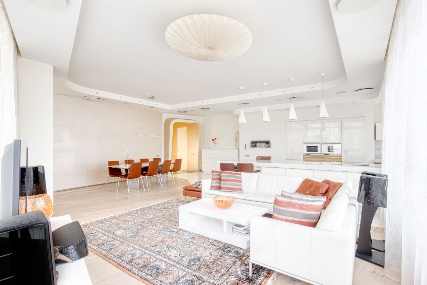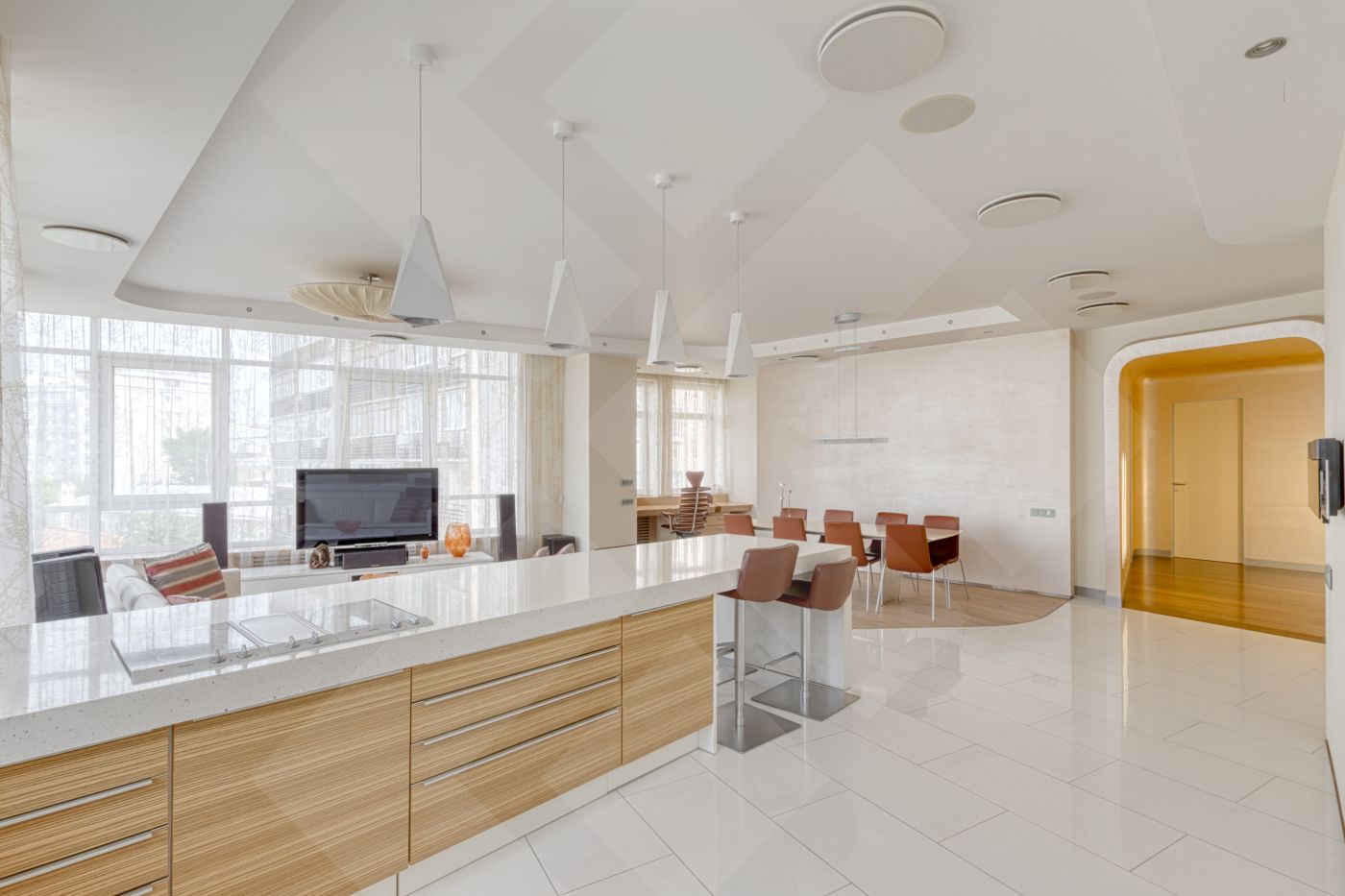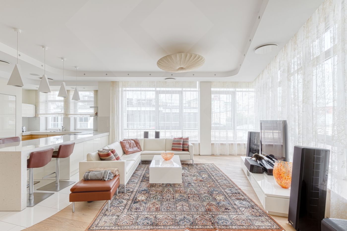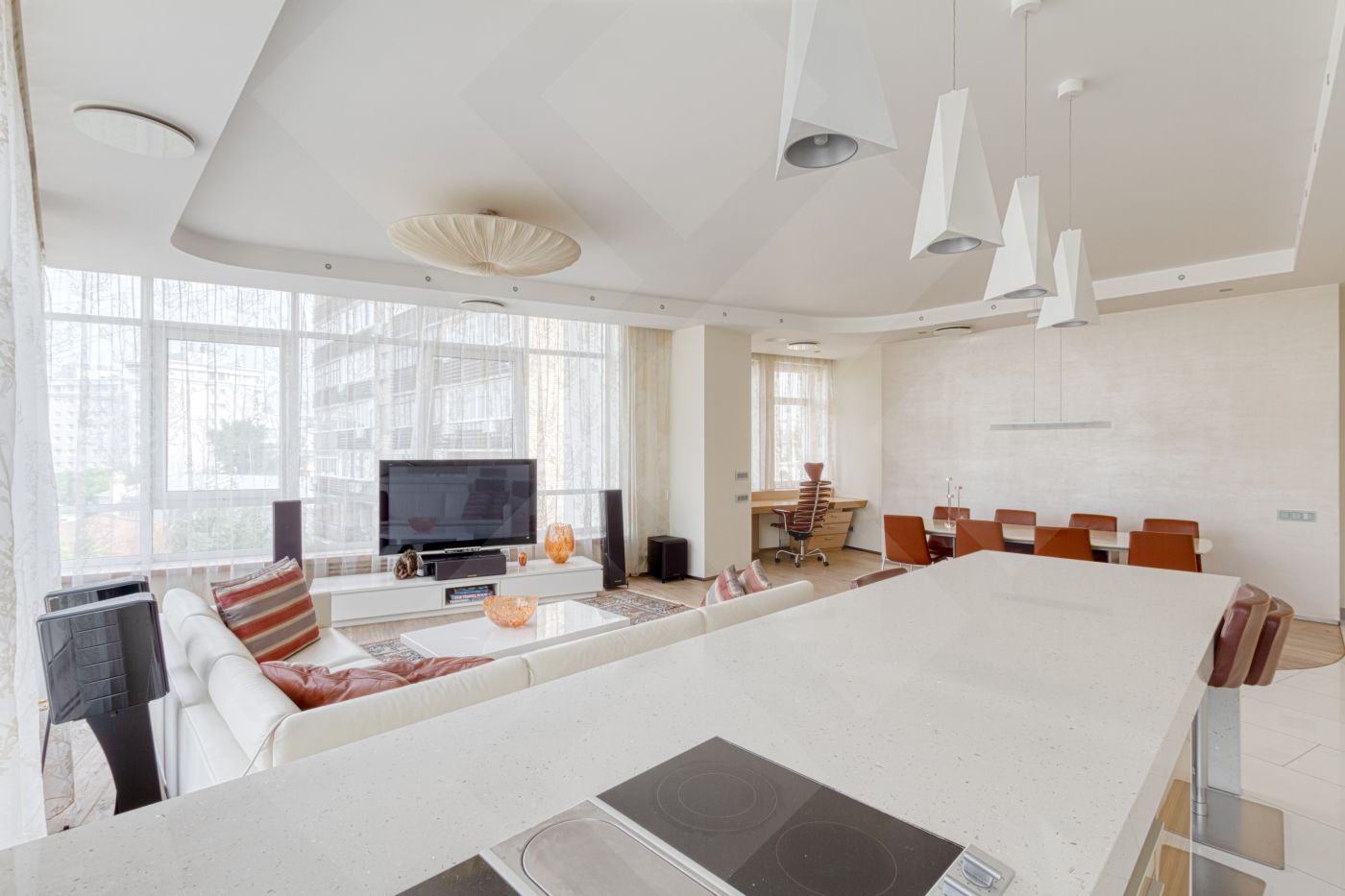 Квартира со вкусом меблирована и оснащена современной бытовой техникой от ведущих мировых производителей премиум-класса Gaggenau. В гостиной панорамные окна. Полы натуральное дерево.