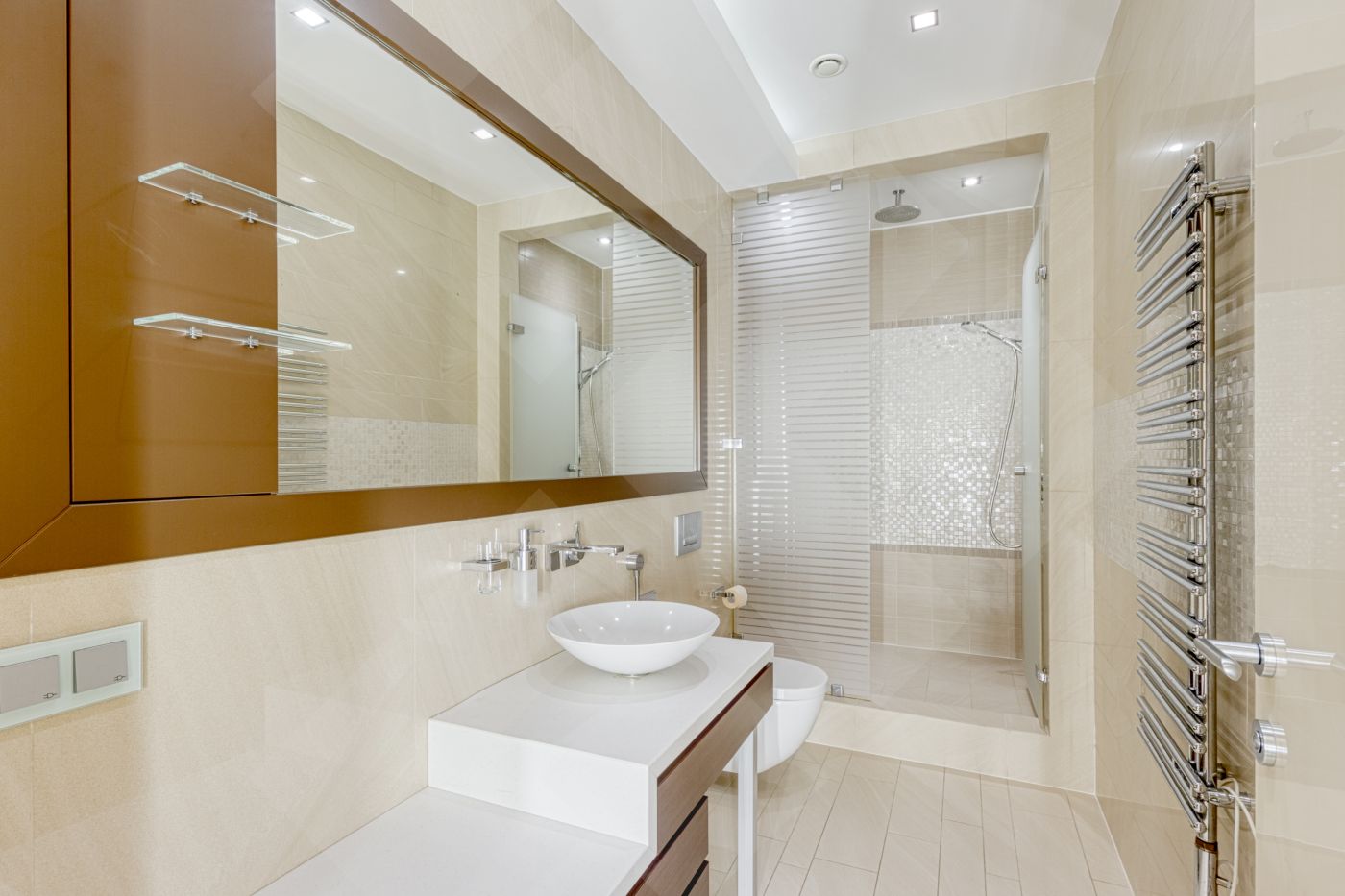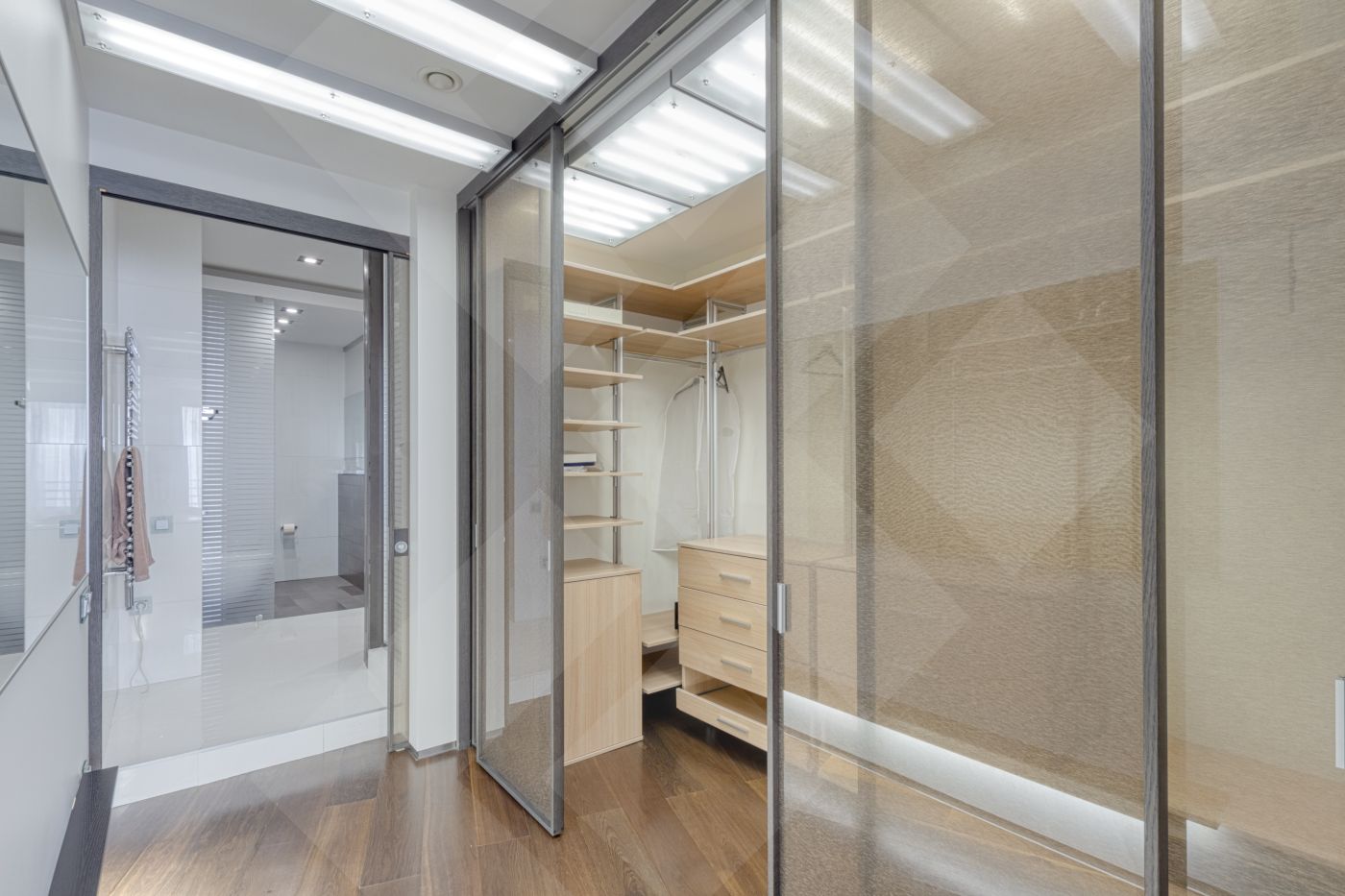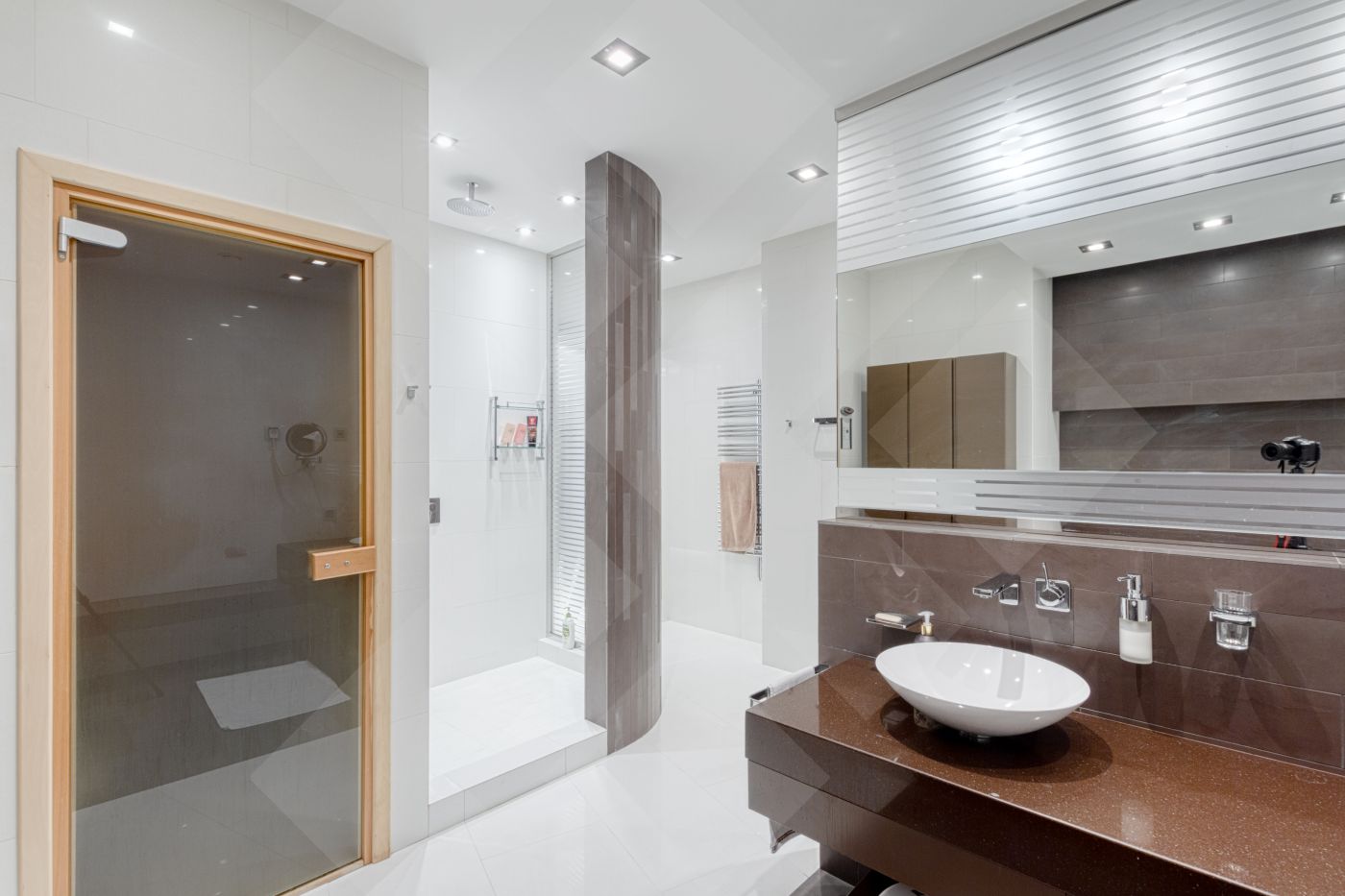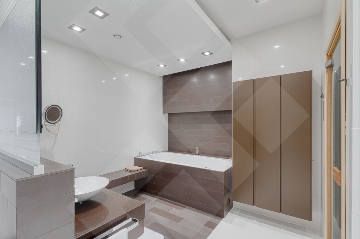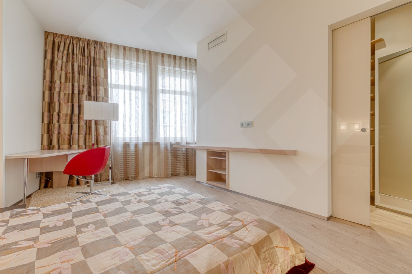 В квартире выполнен ремонт из дорогостоящих материалов по авторскому проекту в современном стиле. Функциональная планировка: кухня и гостиная панорамными окнами, две спальни , бытовая комната, две ванные комнаты, сауна, две гардеробные комнаты. Выделена зона для кабинета, которую можно сделать отдельной комнатой. По всей квартире разведена приточно-вытяжная система и система кондиционирования.