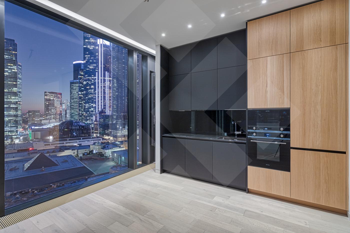 Квартира расположена на 16 этаже, что открывает великолепный вид на город. Светлые и просторные комнаты, высококачественная отделка и продуманная планировка обеспечивают максимальный комфорт. В наличии — большая кухня-гостиная, три уютные спальни и три санузла.