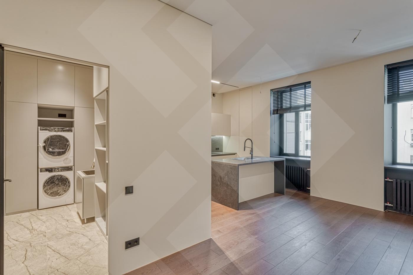 Объединение двух квартир - планировка узаконена. Новая дизайнерская отделка и наполнение, без мебели. Документы готовы.