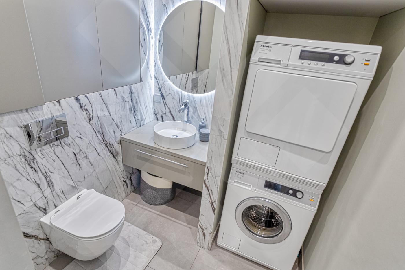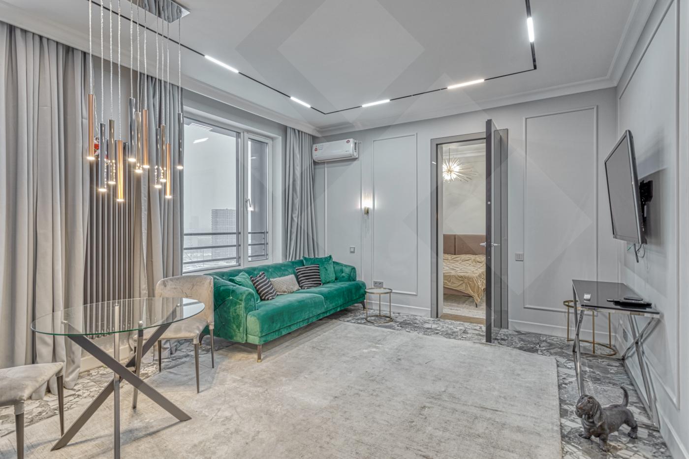 Планировка: евро двухкомнатная. Кухня гостиная, спальня со своим санузлом. Гостевой санузел. Система кондиционирования в каждой комнате.
