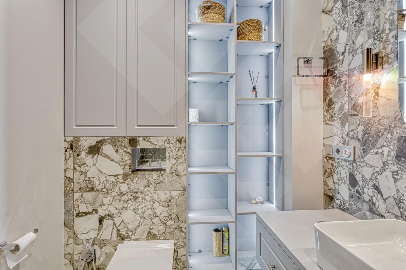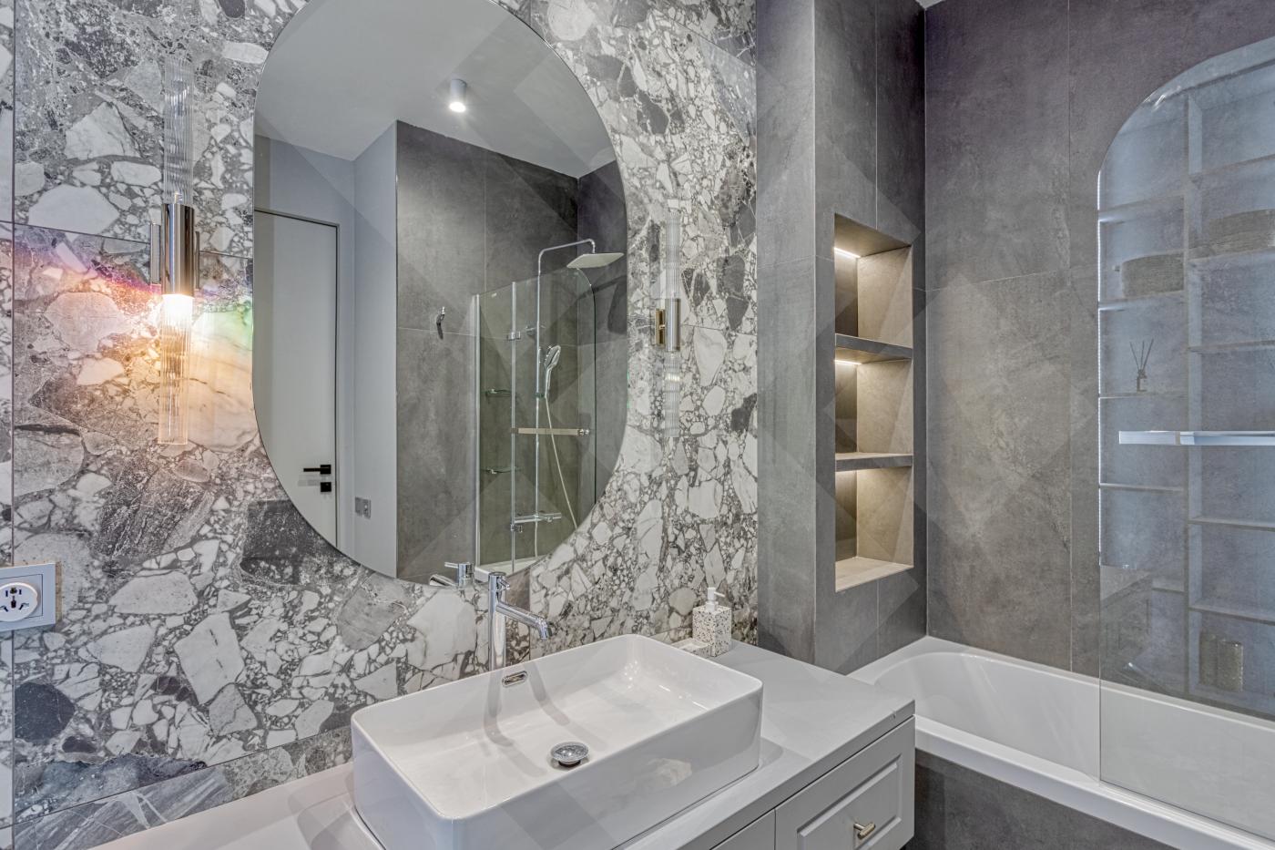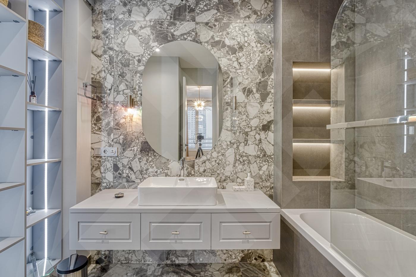 Квартира выполнена с дизайнерским ремонтом, который сочетает в себе элегантность, функциональность + качество. Удобная планировка обеспечивает комфортное зонирование пространства. В квартире есть совмещенный и отдельный санузлы, что особенно удобно для семьи.