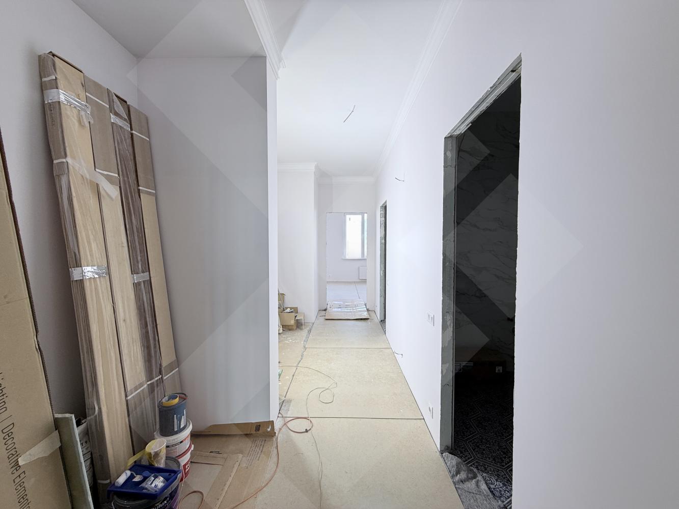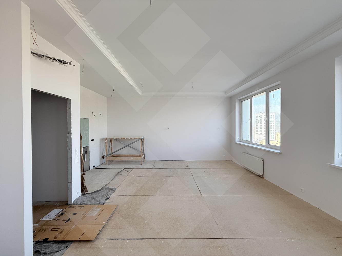 В квартире сделан частичный ремонт, возведены стены, практически закончен ремонт в санузлах. В качестве напольного покрытия использован паркет(прикрыт листами фанеры).